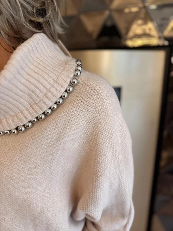 Comfortabele trui met een hoge boord en een klassiek kabelpatroon. Een tijdloos en warm item dat stijl en comfort perfect combineert.
