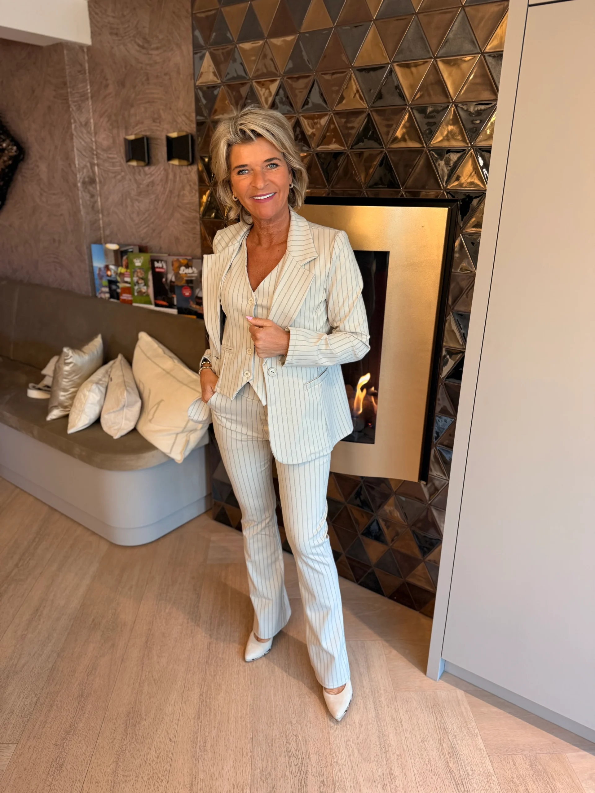 Deze elegante blazer heeft een getailleerde pasvorm en valt over de heupen. De blazer is voorzien van een reverskraag, 1 knoop als sluiting en twee klepzakken aan de voorkant. De Viscose mix stof zorgt voor een comfortabele pasvorm. Perfect te combineren met de bijpassende broek, rok of gilet voor een complete outfit.