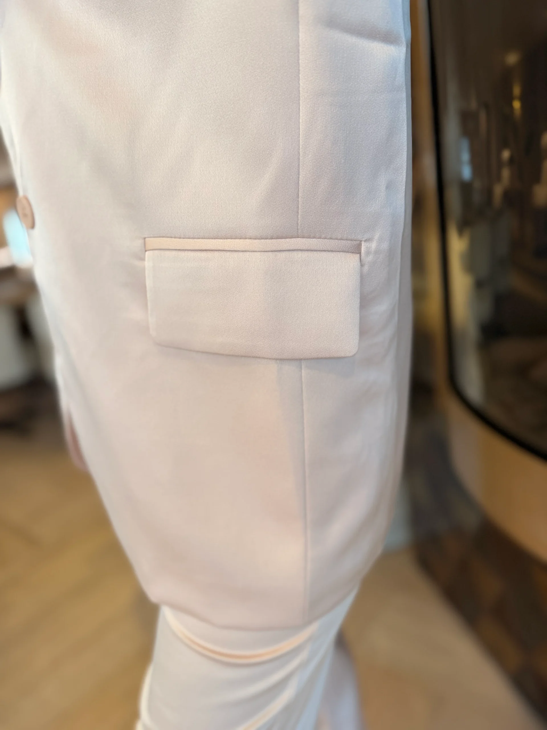 Combineer deze blazer met de bijpassende broek voor een complete en stijlvolle set, perfect voor zowel zakelijke als feestelijke gelegenheden.