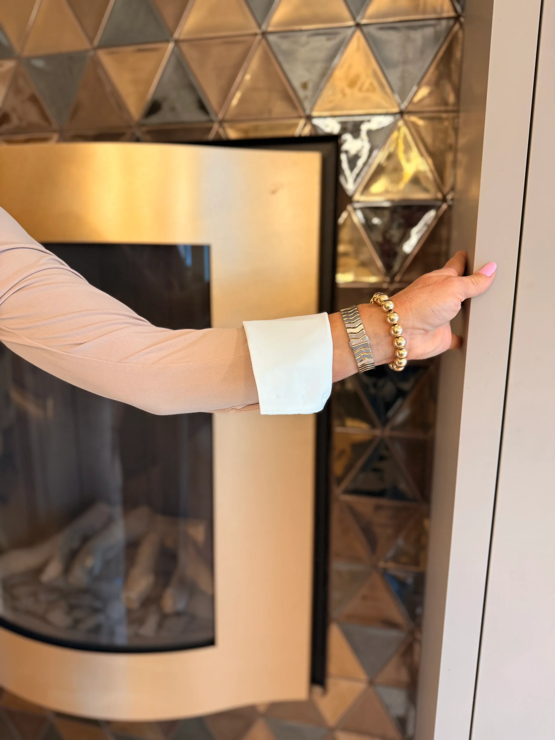 Deze aangesloten blouse is een echte klassieker met doordachte details. De manchetten zijn voorzien van vijf knoopjes, wat zorgt voor een elegante afwerking. Bij de buste zijn extra knopen aangebracht, zodat de blouse mooi gesloten blijft en niet open gaat staan. De afgeronde onderkant maakt het silhouet net wat zachter en zorgt ervoor dat de blouse zowel in als over de broek mooi valt.