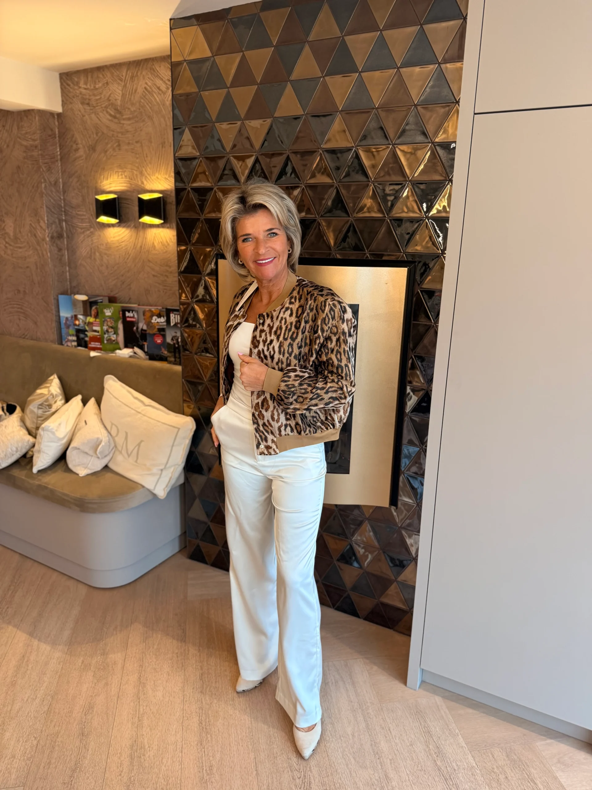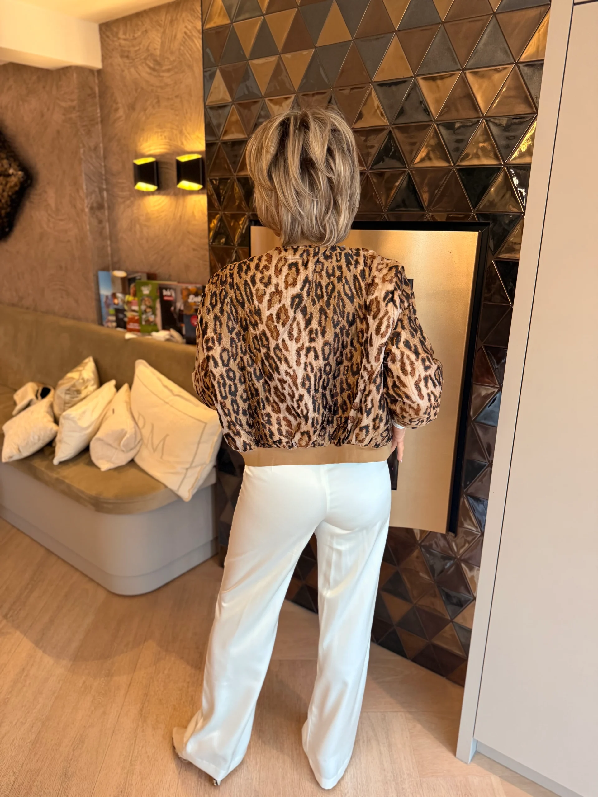 Een trendy bomber met panterprint en een subtiele glitter die elke outfit direct een stoere en modieuze uitstraling geeft. De comfortabele pasvorm en het tijdloze design maken dit item perfect voor zowel casual als stijlvolle looks.