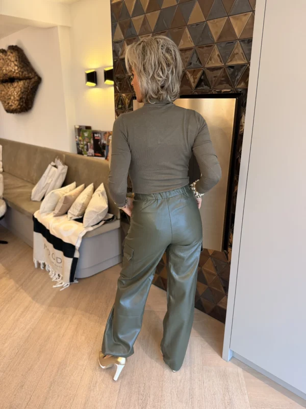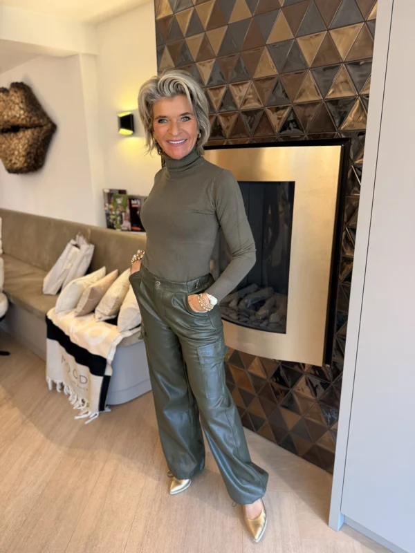 Deze cargobroek combineert comfort met stijl. Gemaakt van een soepele stof die mooi valt en afgewerkt is met subtiele details. De zijkant heeft cargozakken, voorzijde steekzakken en op de achterkant zitten twee klepzakken. De pijp loopt onderaan iets uit en is afgewerkt met een boord en rits – een speels accent dat perfect past bij sneakers of hakken.