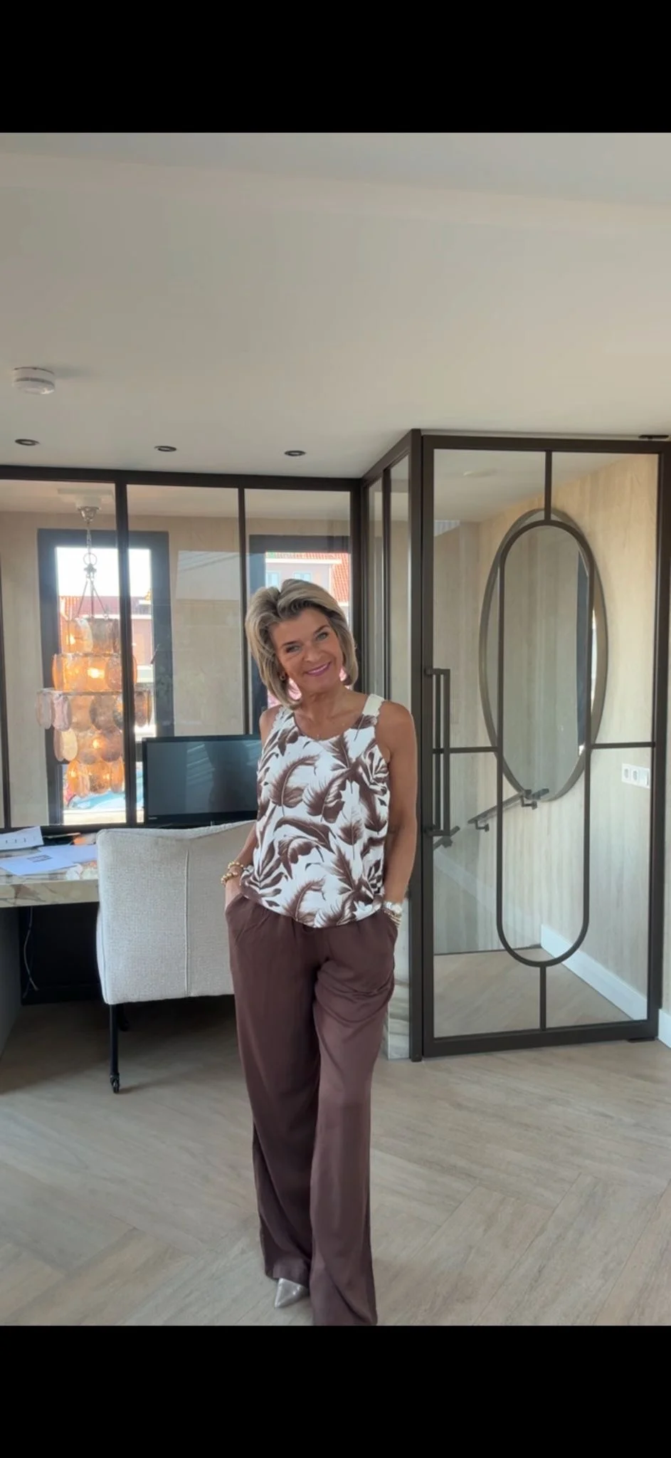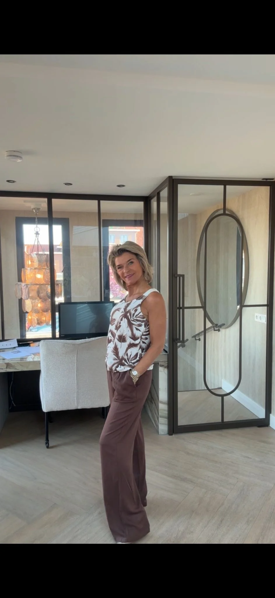 Deze broek heeft rechte pijpen en is voorzien van praktische steekzakken. De elastische boord zorgt voor extra comfort en een fijne pasvorm. De achterkant is glad afgewerkt, wat de broek een rustige en nette uitstraling geeft. Binnenbeenlengte 82cm.