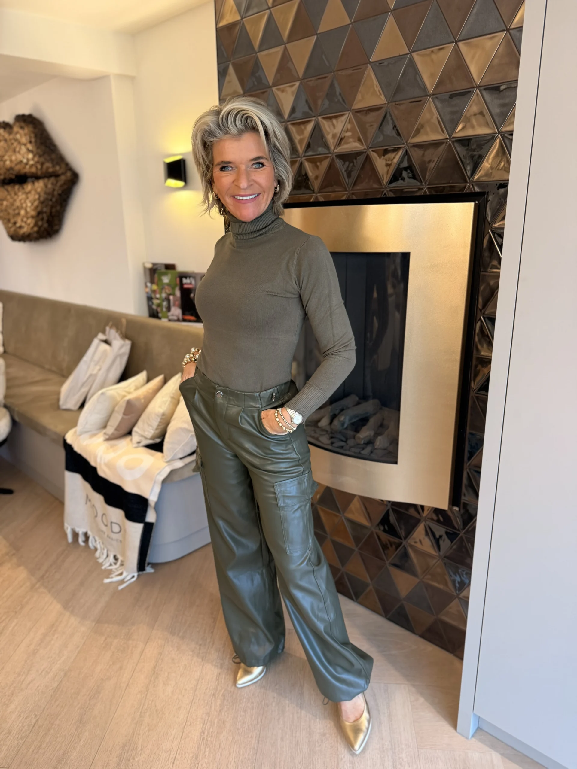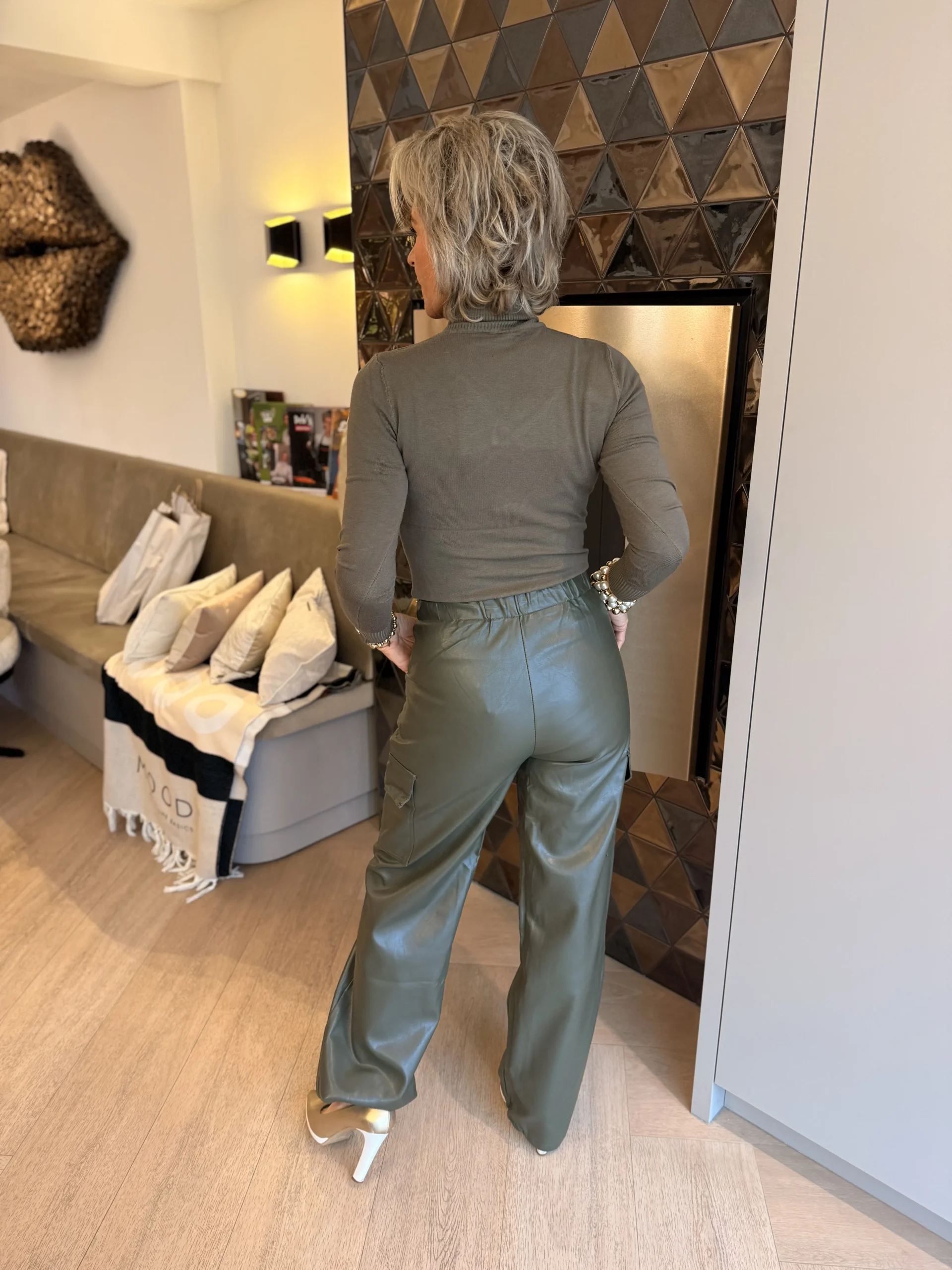 Deze stoere cargobroek in army kleur is een must-have voor een casual en krachtige look.