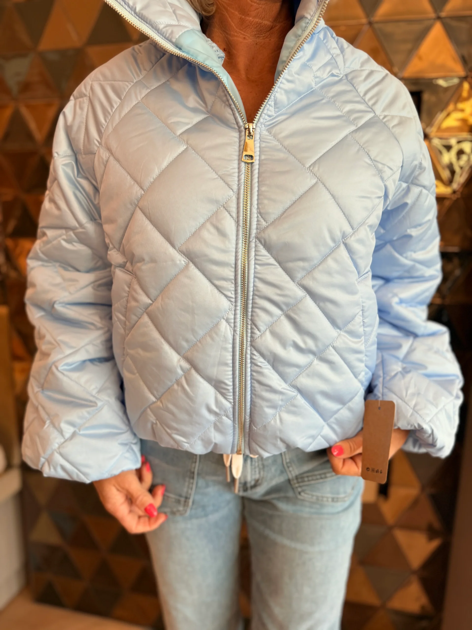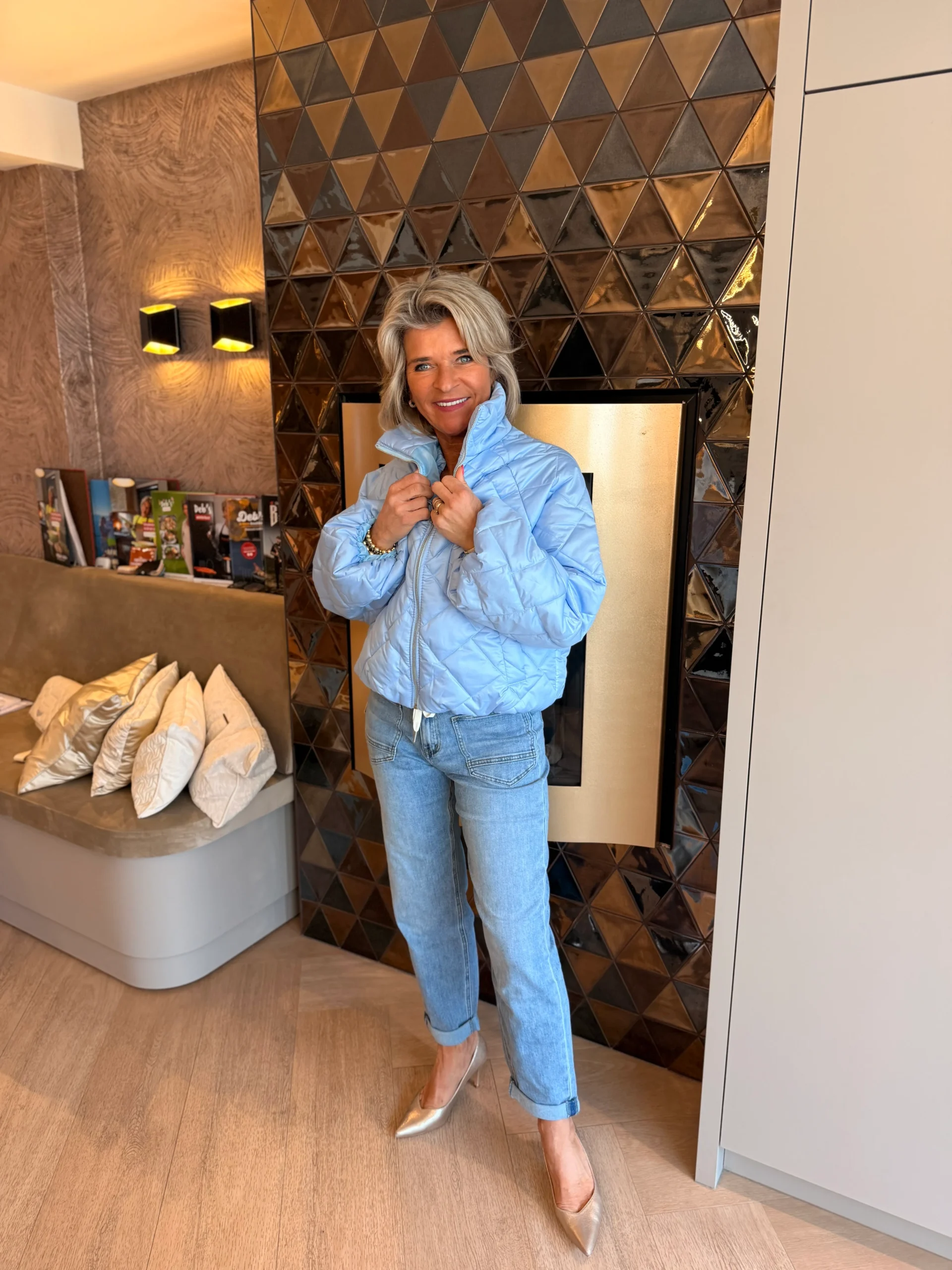 Dit korte jasje combineert een moderne uitstraling met praktisch comfort. De hoge kraag geeft een stijlvolle en beschermende touch, terwijl de zilveren rits zorgt voor een stoer accent. Dankzij het elastiek aan de onderkant sluit het jasje mooi aan en blijft het perfect in model. Ideaal voor een trendy, sportieve look.