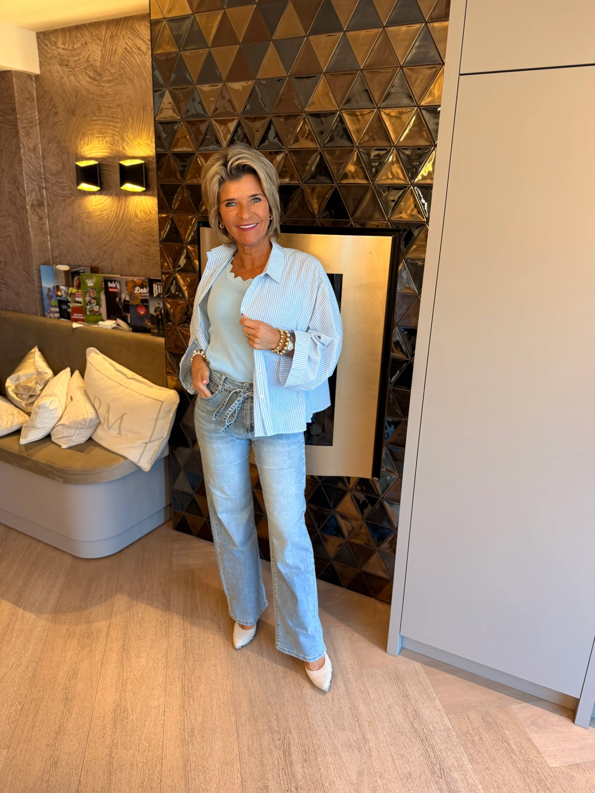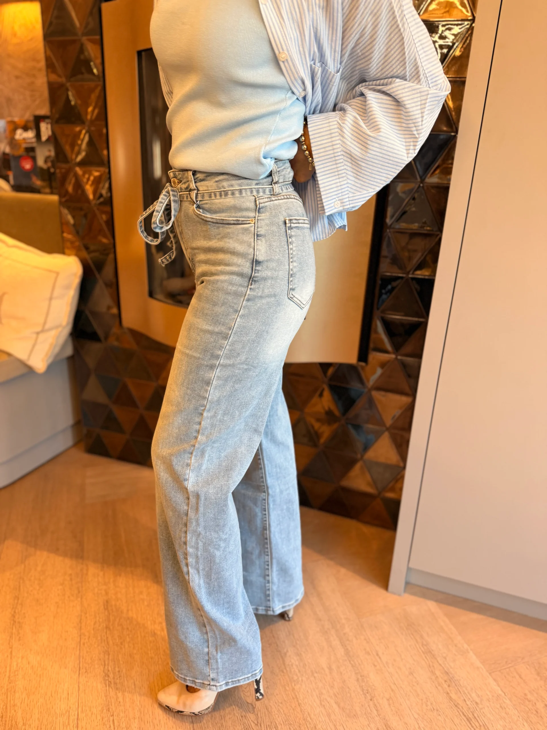Deze jeans combineert comfort en stijl. De afneembare koordsluiting kun je eruit halen voor een clean look, of juist dragen als speelse riem voor extra detail. Perfect om eenvoudig te stylen, van casual tot trendy.
