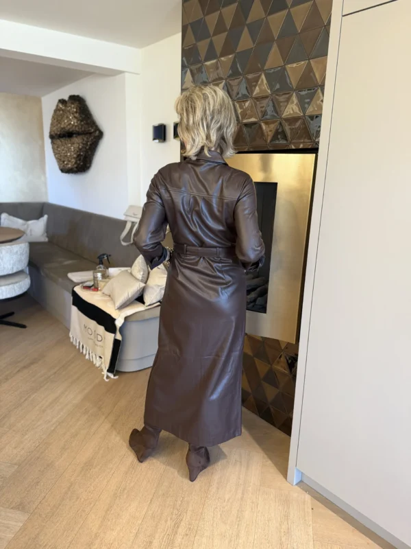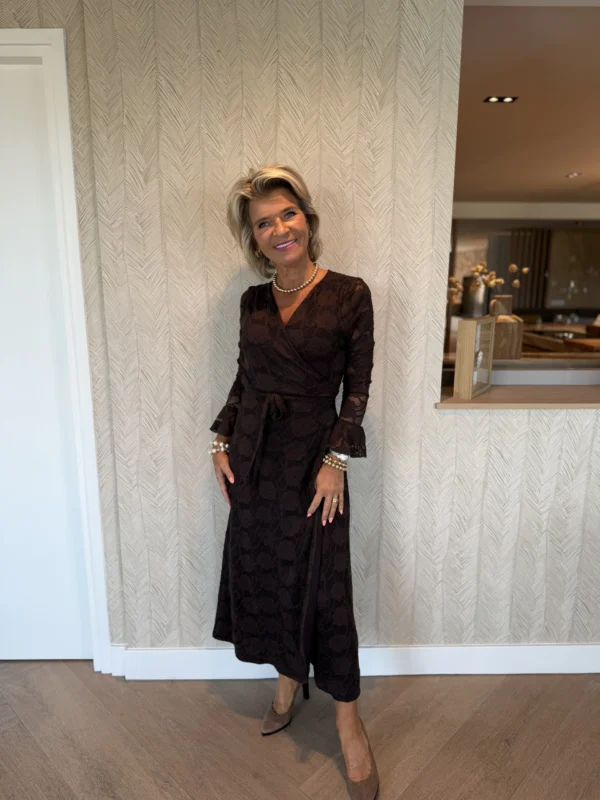 Deze stijlvolle jurk combineert eenvoud met verfijnde details. De mouwen zijn afgewerkt met een subtiel omslagje, en aan de rechterkant van de jurk zit een elegante split. De jurk wordt geleverd met een koord dat je kunt gebruiken om de taille te accentueren voor een vrouwelijk silhouet, of draag het als een speelse sjaal voor een andere look!
