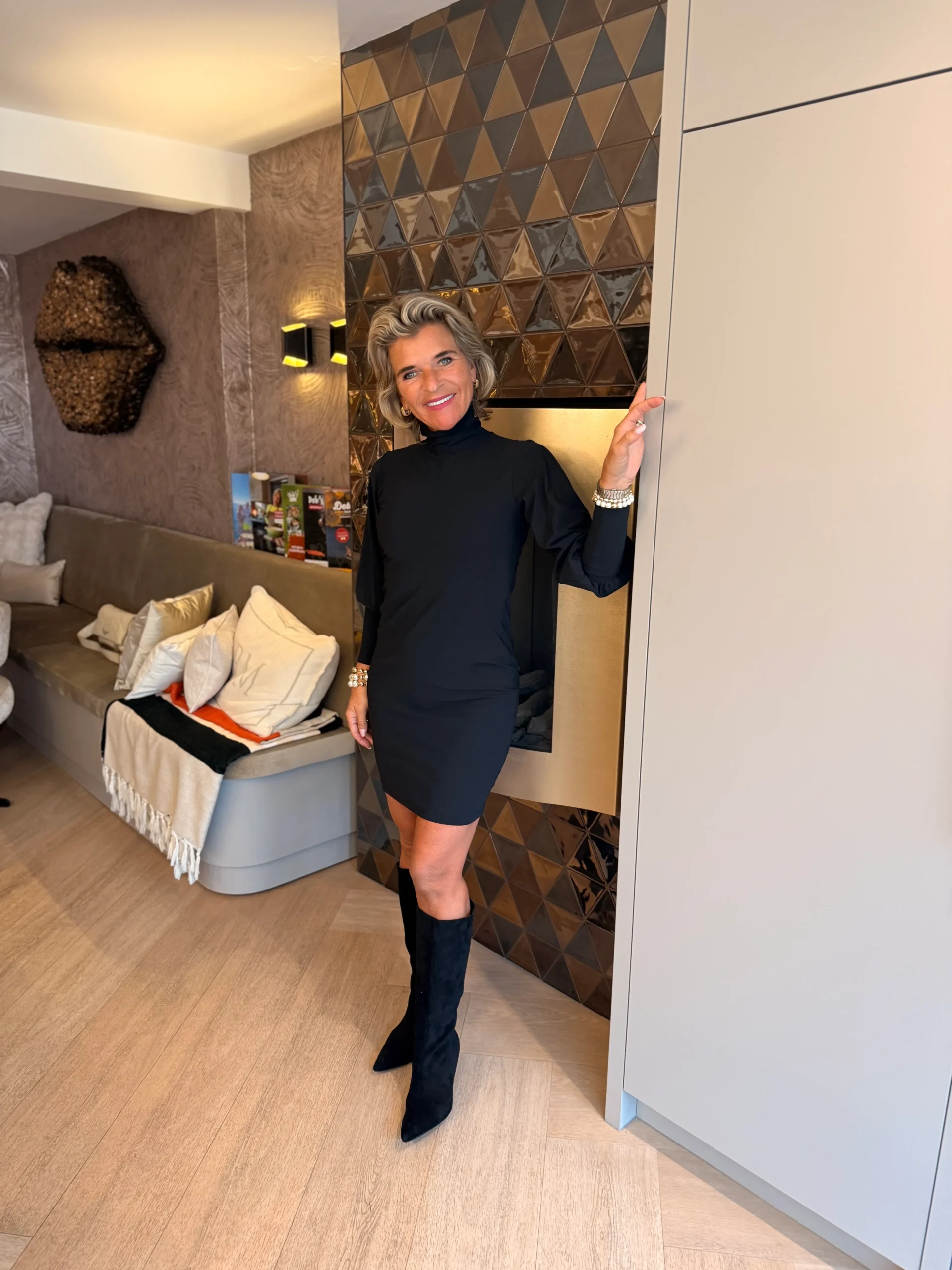 Deze elegante lange jurk is gemaakt van hoogwaardige travelkwaliteit: comfortabel, kreukvrij en heerlijk soepel vallend. De jurk heeft een stijlvolle col en lange mouwen die onderaan subtiel geplooid zijn, afgewerkt met een extra lange boord voor een moderne en luxe uitstraling.