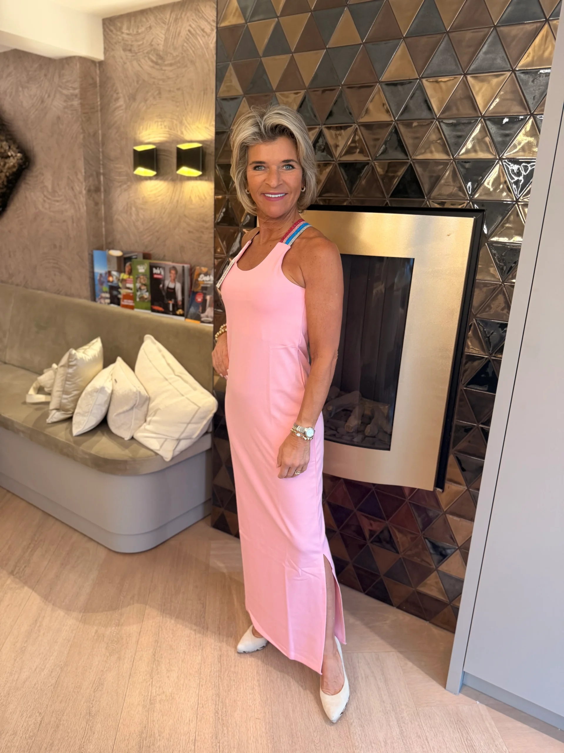 De lange split aan de zijkant zorgt voor extra bewegingsvrijheid en een subtiele, sensuele touch. Perfect voor een zomerse avond, vakantie of strandwandeling comfortabel, luchtig en onweerstaanbaar stijlvol.