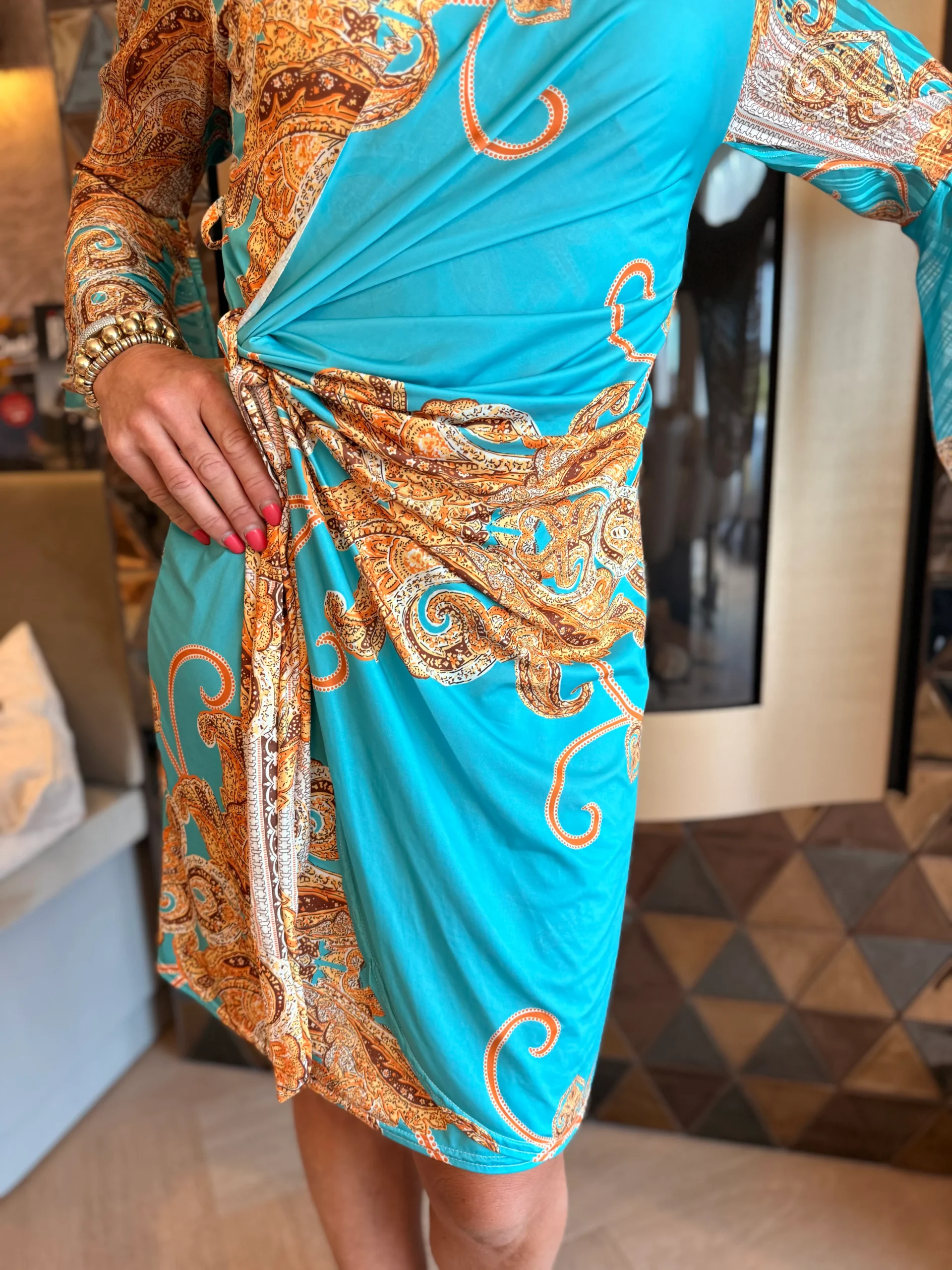 Deze jurk is one-size en te dragen tot en met maat XL. Het model is een overslagjurk die je aan de zijkant kunt strikken, wat zorgt voor een mooie, vrouwelijke pasvorm.