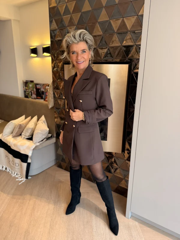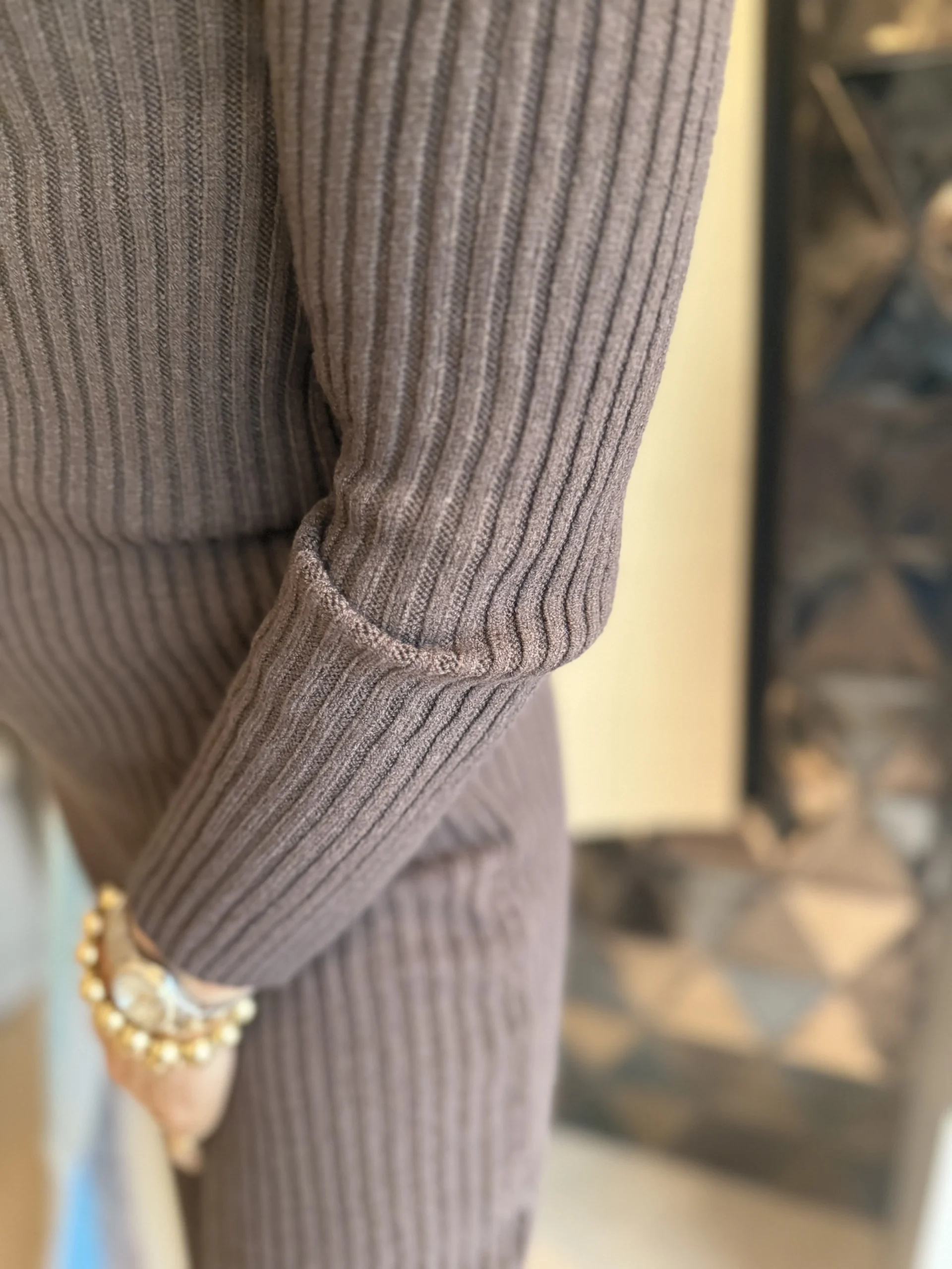Deze gebreide jurk is een echte musthave voor het najaar en de winter. Dankzij de aangesloten pasvorm en de elegante hoge hals krijgt de jurk een stijlvolle en vrouwelijke uitstraling. De lange mouwen en de fijn gebreide, elastische stof zorgen voor ultiem draagcomfort, terwijl de ribstructuur het geheel een tijdloze en moderne look geeft.
