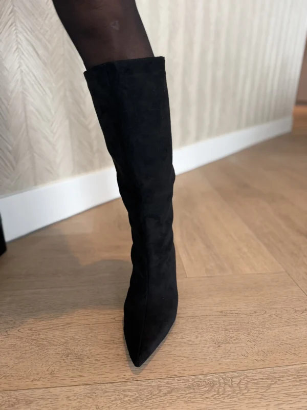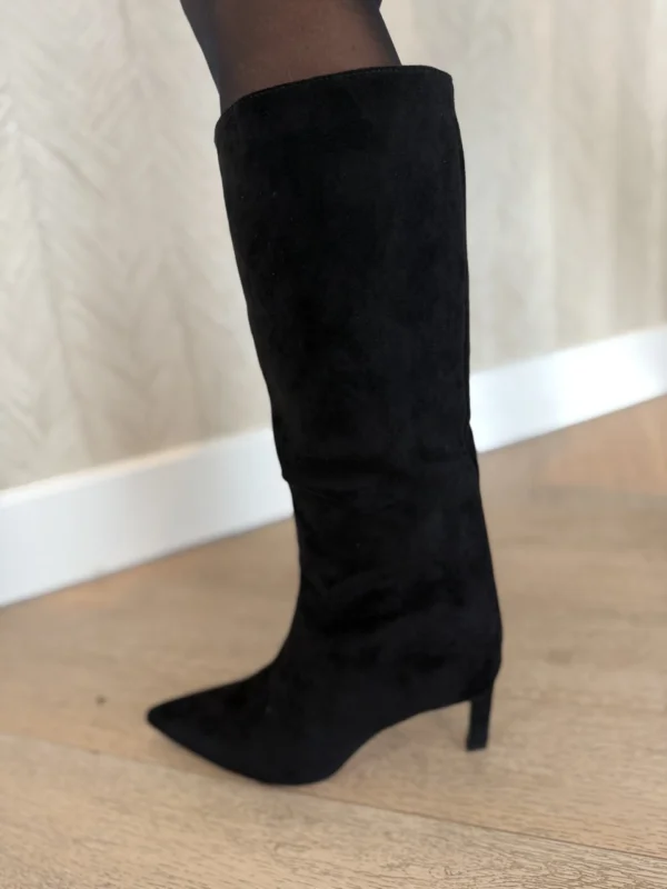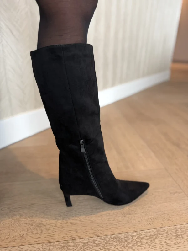 Stijlvolle laars van soepel suedine, voorzien van een rits voor gemakkelijk aan- en uittrekken. Heeft een klein hakje van 2 cm en een schachthoogte van 44 cm, waardoor hij comfortabel en elegant is. Perfect te combineren met zowel jurken als broeken voor een chique look.