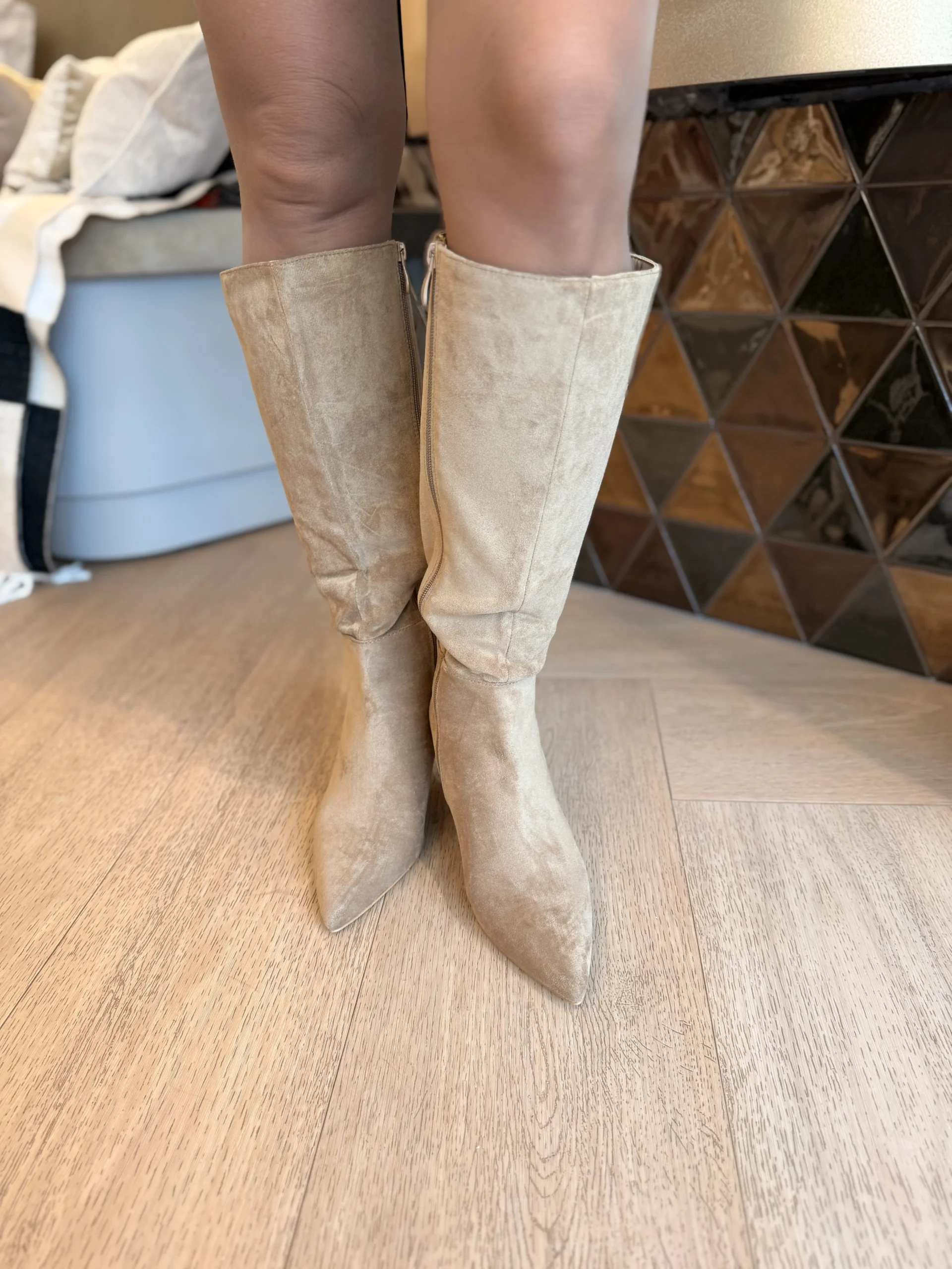 Deze stijlvolle suèdine laars combineert elegantie en comfort moeiteloos. De verfijnde hak geeft je outfit een vrouwelijke touch, terwijl de binnenkant is gevoerd met heerlijk zacht materiaal voor een warm en aangenaam draaggevoel. Perfect voor lange dagen én stijlvolle avonden!