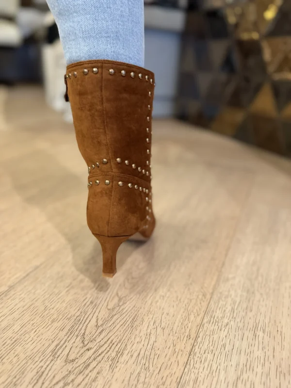 Stoere laars met elegante hak in suèdine-look