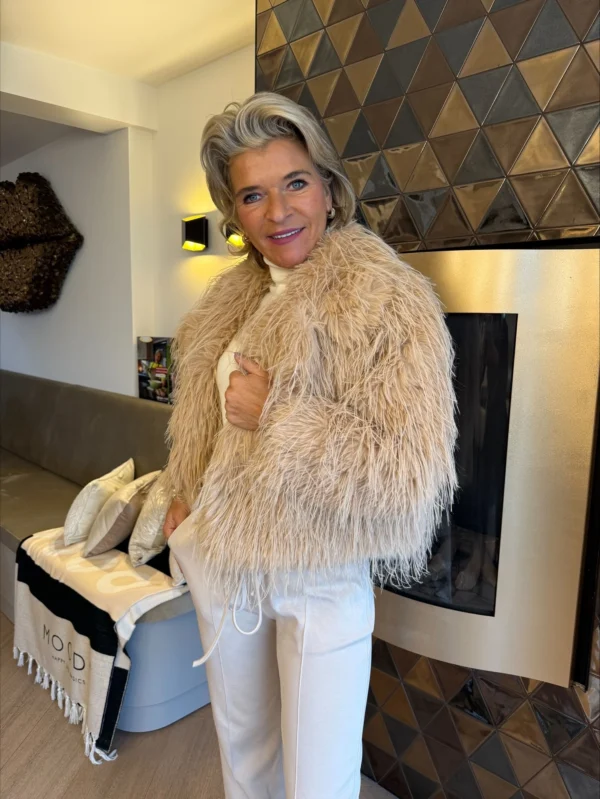 Deze elegante poncho is een echte blikvanger voor het najaar! Het model heeft een hoge col die heerlijk warm aanvoelt en de mouwen zijn afgewerkt met een zachte bontrand voor een chique touch.