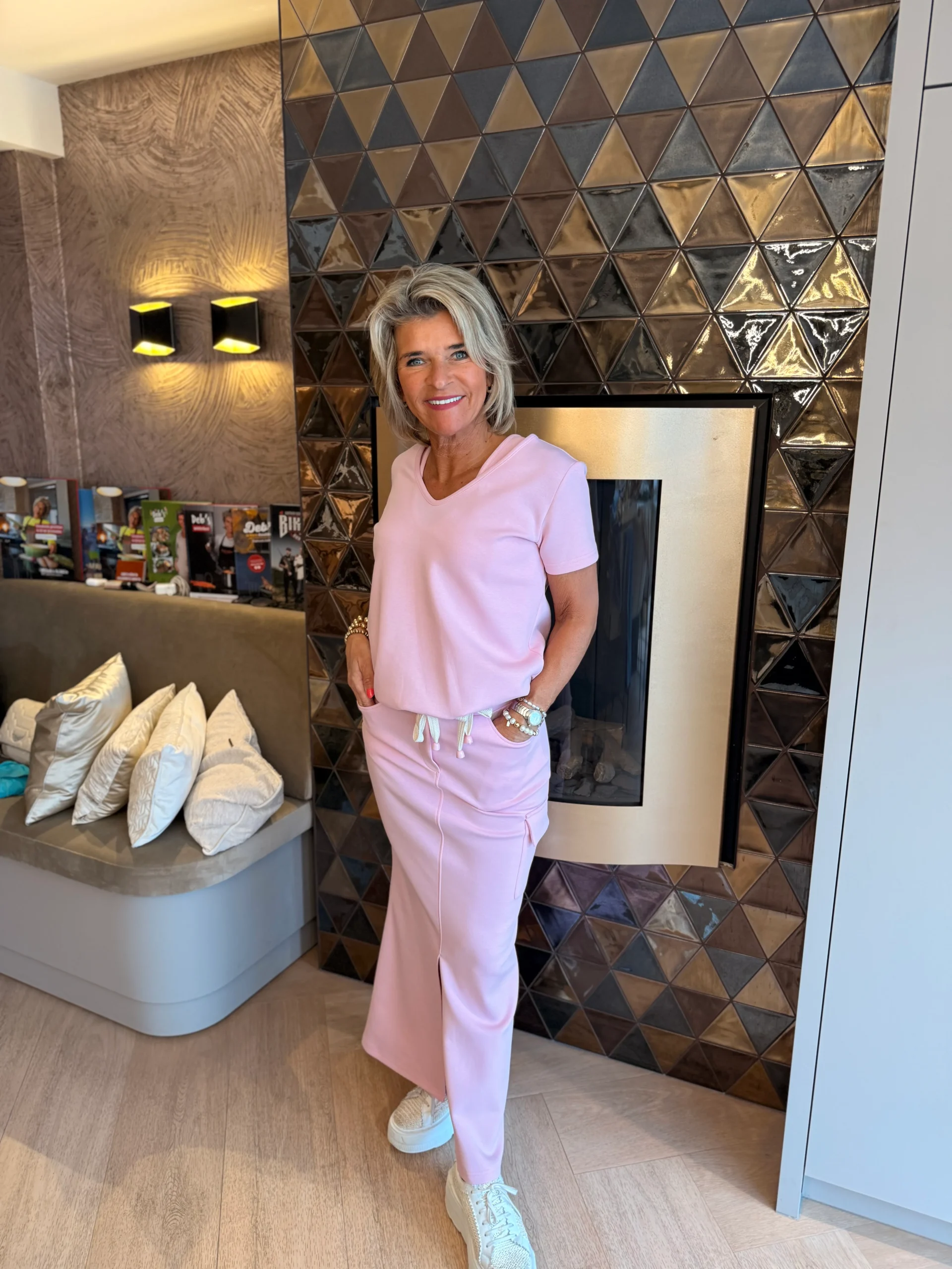 Deze lange rok van scubastof combineert comfort met een sportieve en stijlvolle uitstraling. De stevige maar soepele stof zorgt ervoor dat de rok mooi in model blijft en prettig draagt.