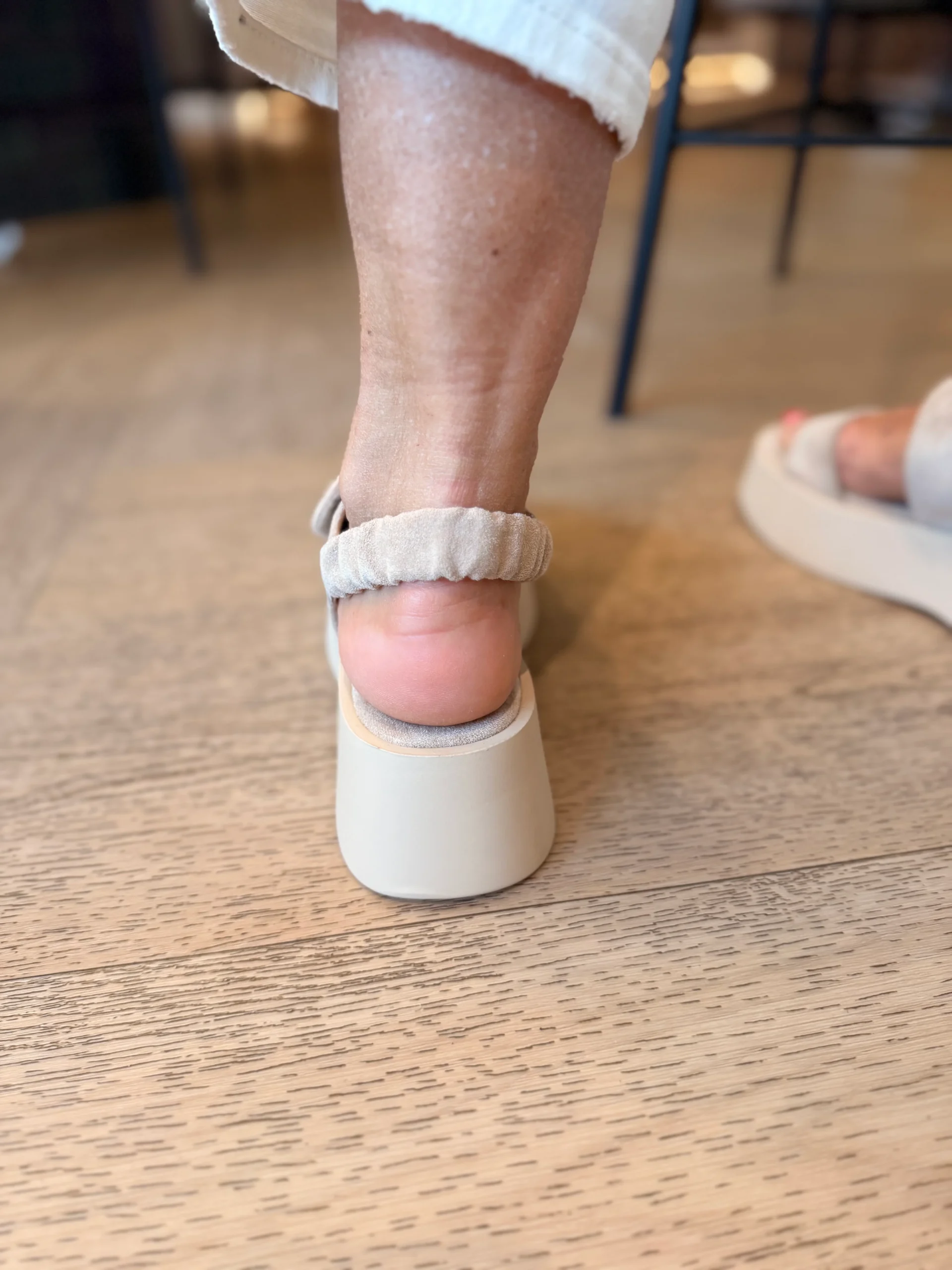Deze suède sandaal combineert stijl met comfort. De twee banden over de voet en de open teen geven een zomerse, elegante uitstraling. De band kun je verstellen met klittenband. Aan de achterkant zorgt een band met elastiek voor een fijne pasvorm, afgewerkt met een prachtige grote knoop als stijlvol detail. De sandaal heeft een stevige, beige zool die zorgt voor een moderne look, terwijl de suède binnenzool heerlijk zacht aanvoelt. Perfect voor warme dagen waarop comfort en uitstraling samenkomen.