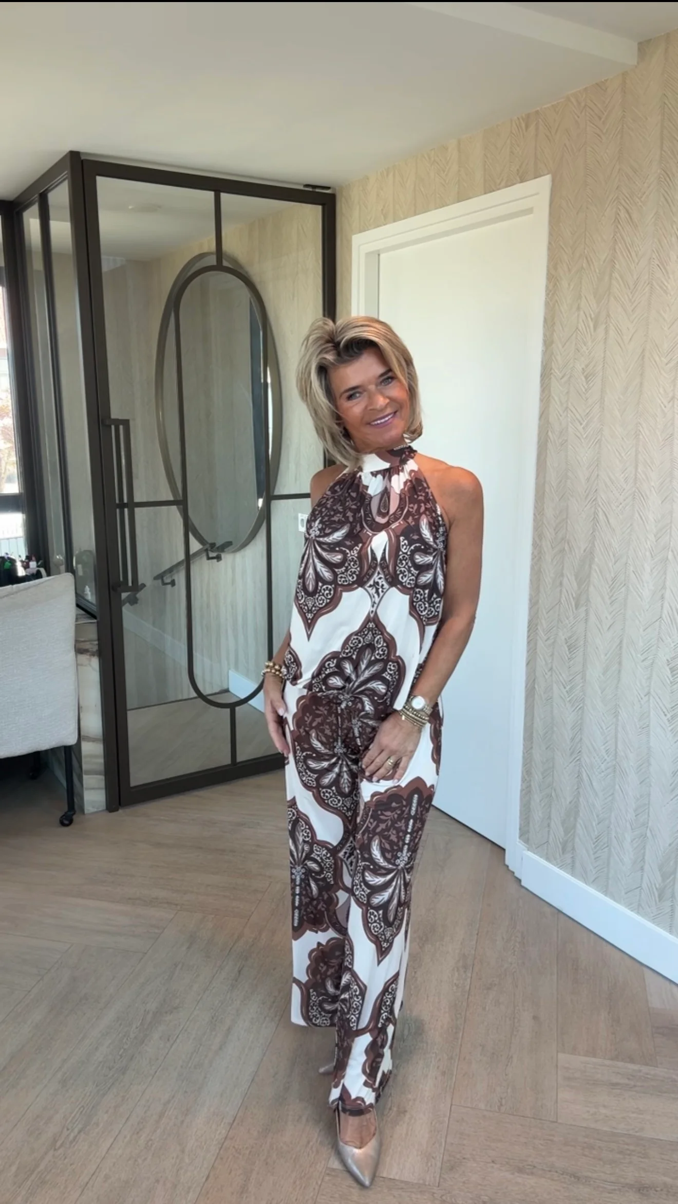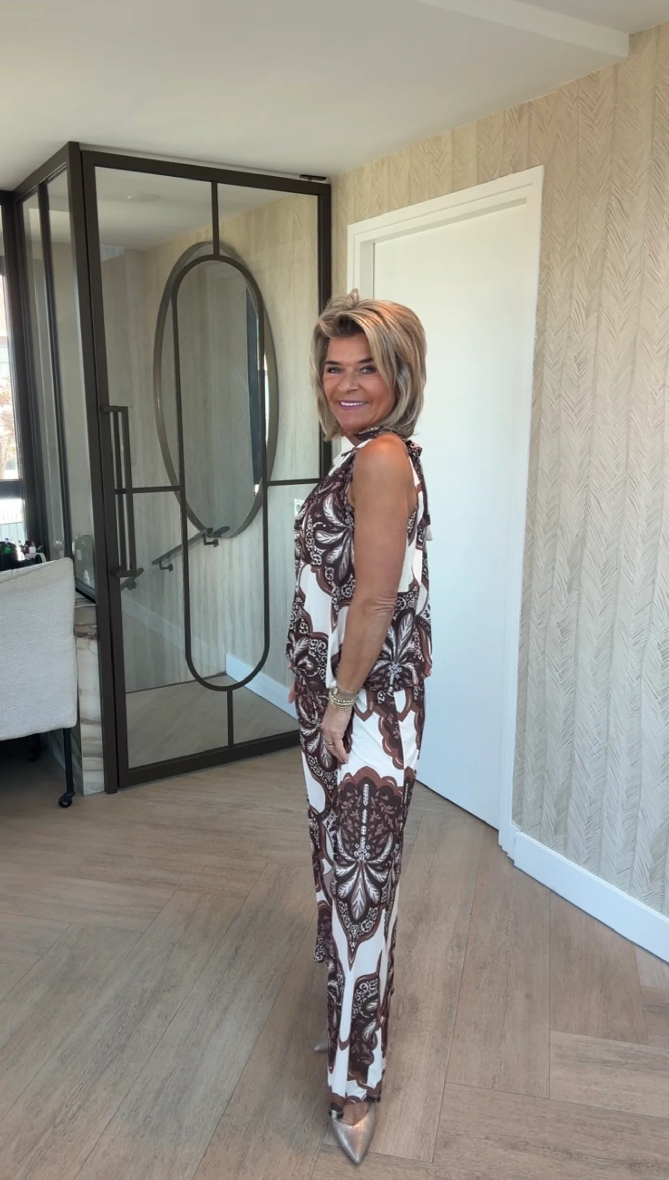 Elegante 2-delige set met een stijlvolle haltertop en een perfect bijpassende high-waist broek. Dankzij de aansluitende pasvorm en identieke stof creëert deze set moeiteloos de look van een jumpsuit, terwijl je geniet van het comfort en de veelzijdigheid van twee losse items. Perfect voor een chique avond, vakantie of een trendy everyday outfit.