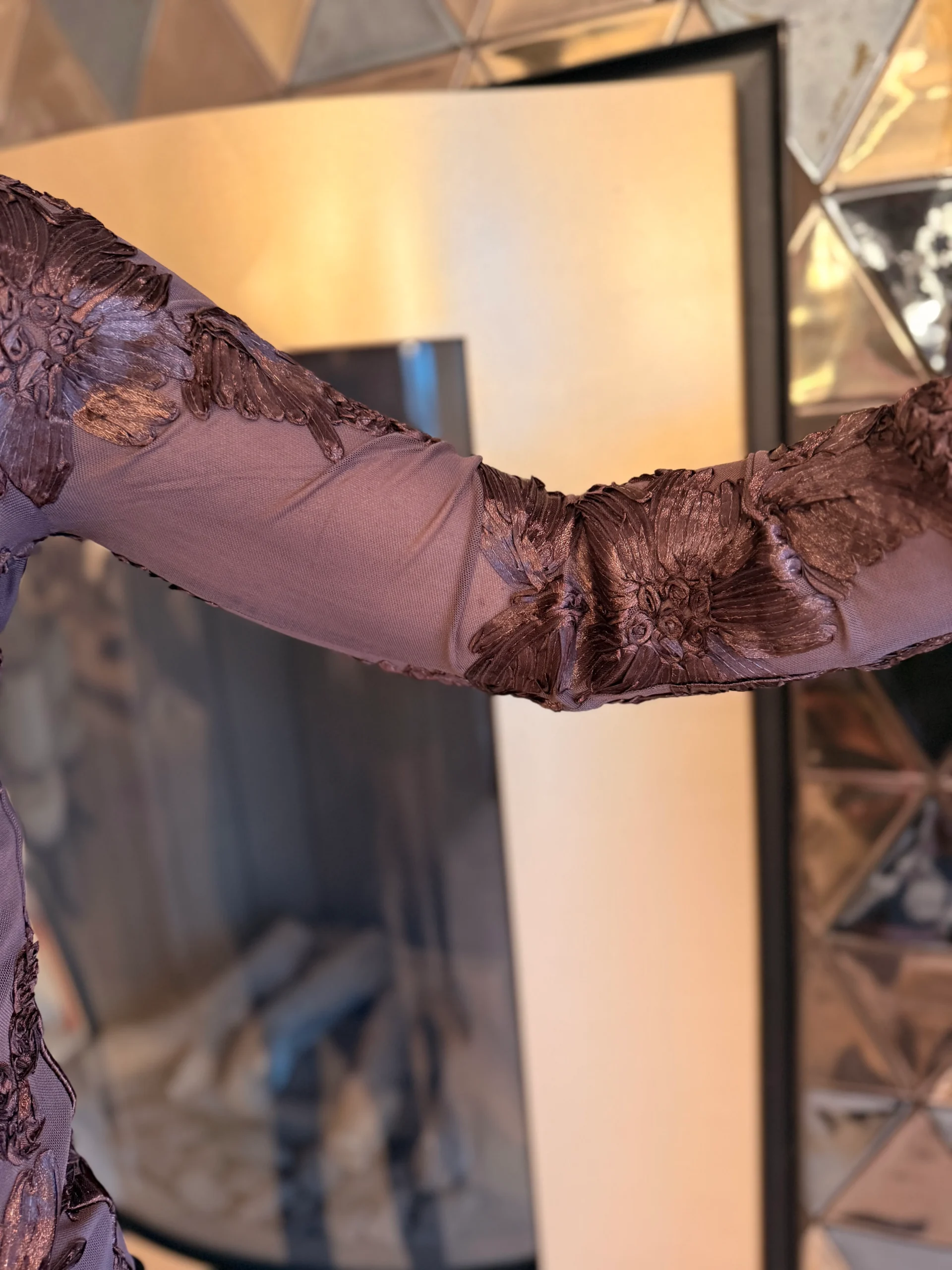 Mesh shirt met prachtig opgenaaide bloemenprint