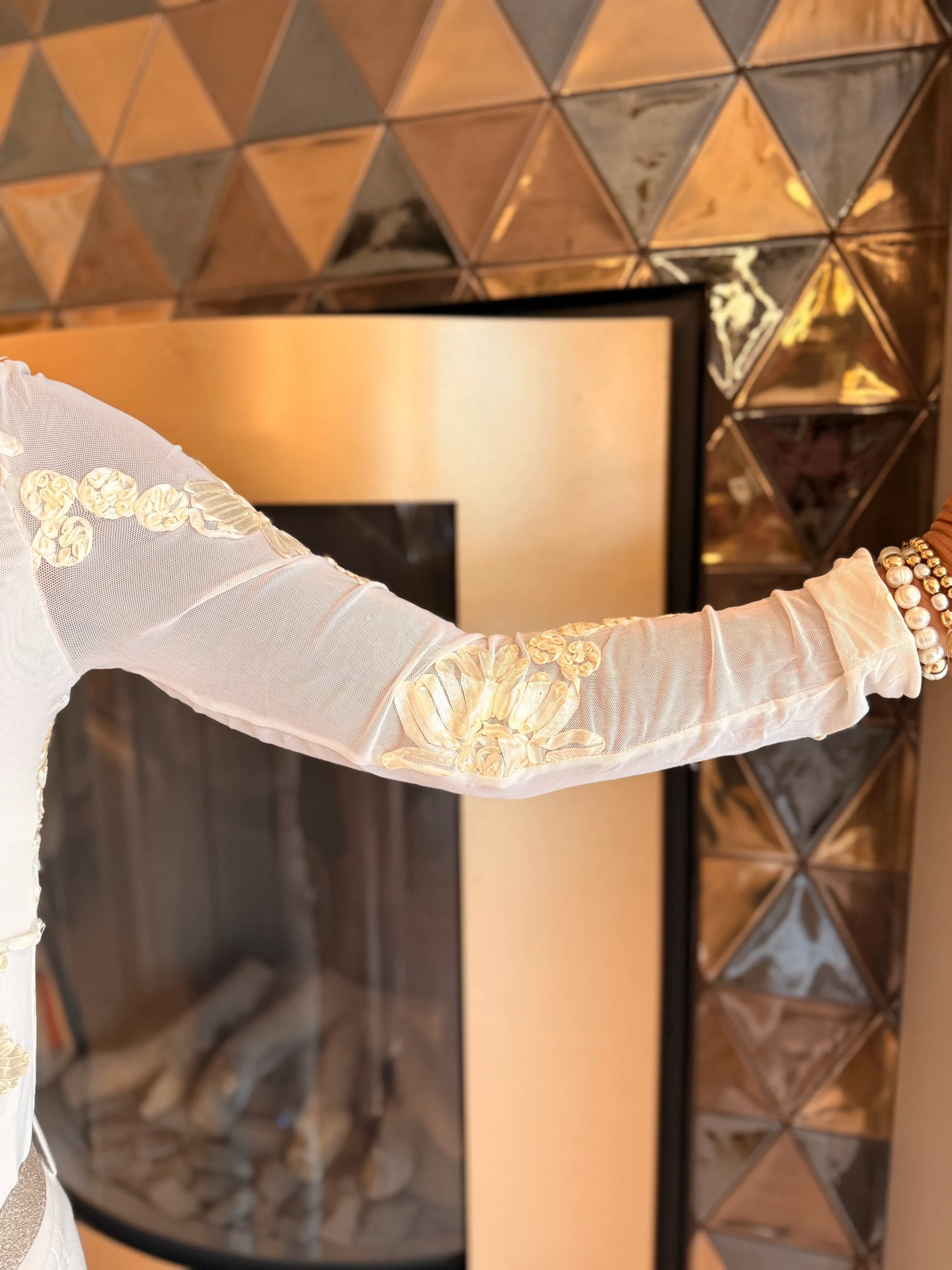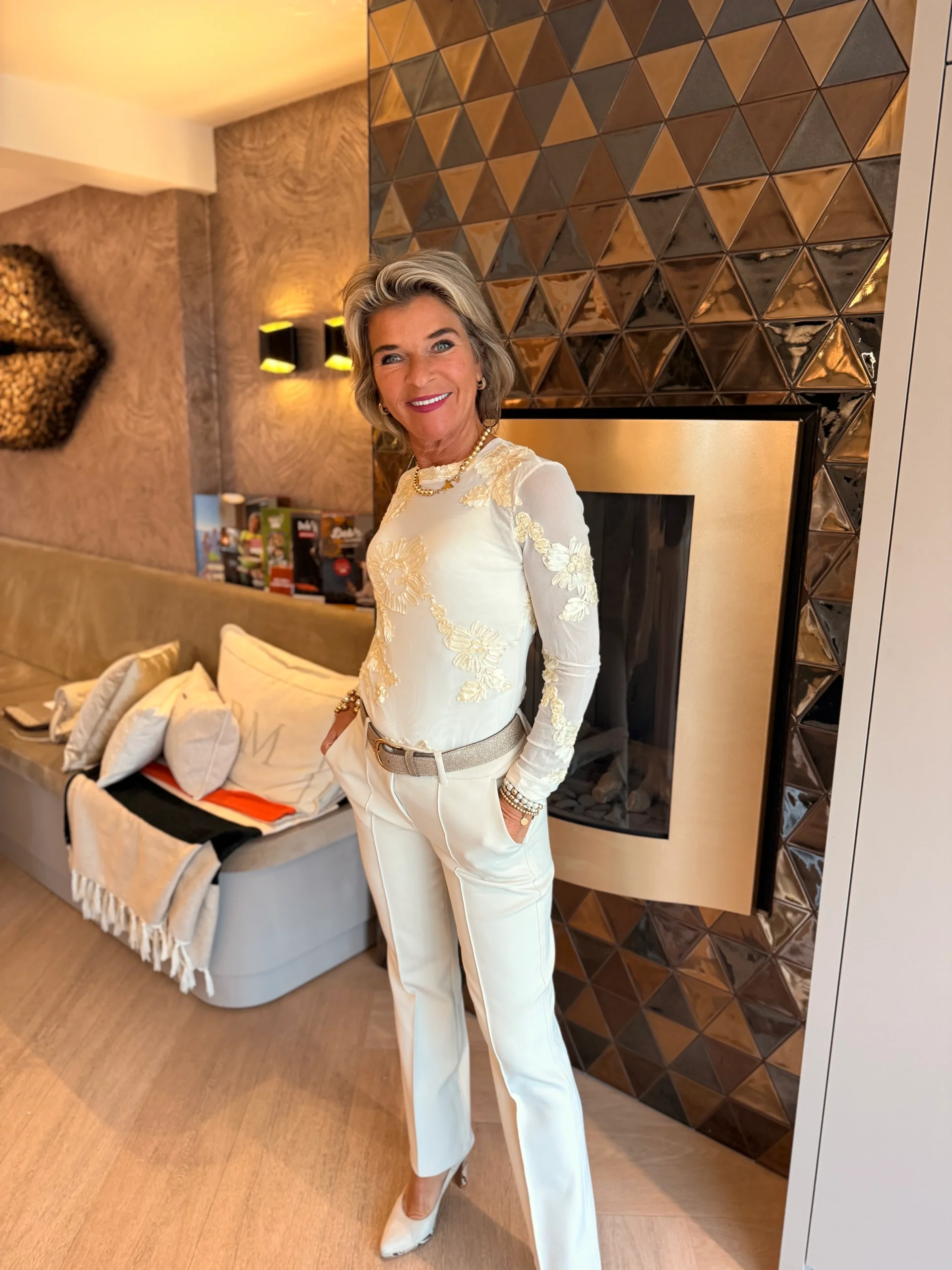 Mesh shirt met prachtig opgenaaide bloemenprint
