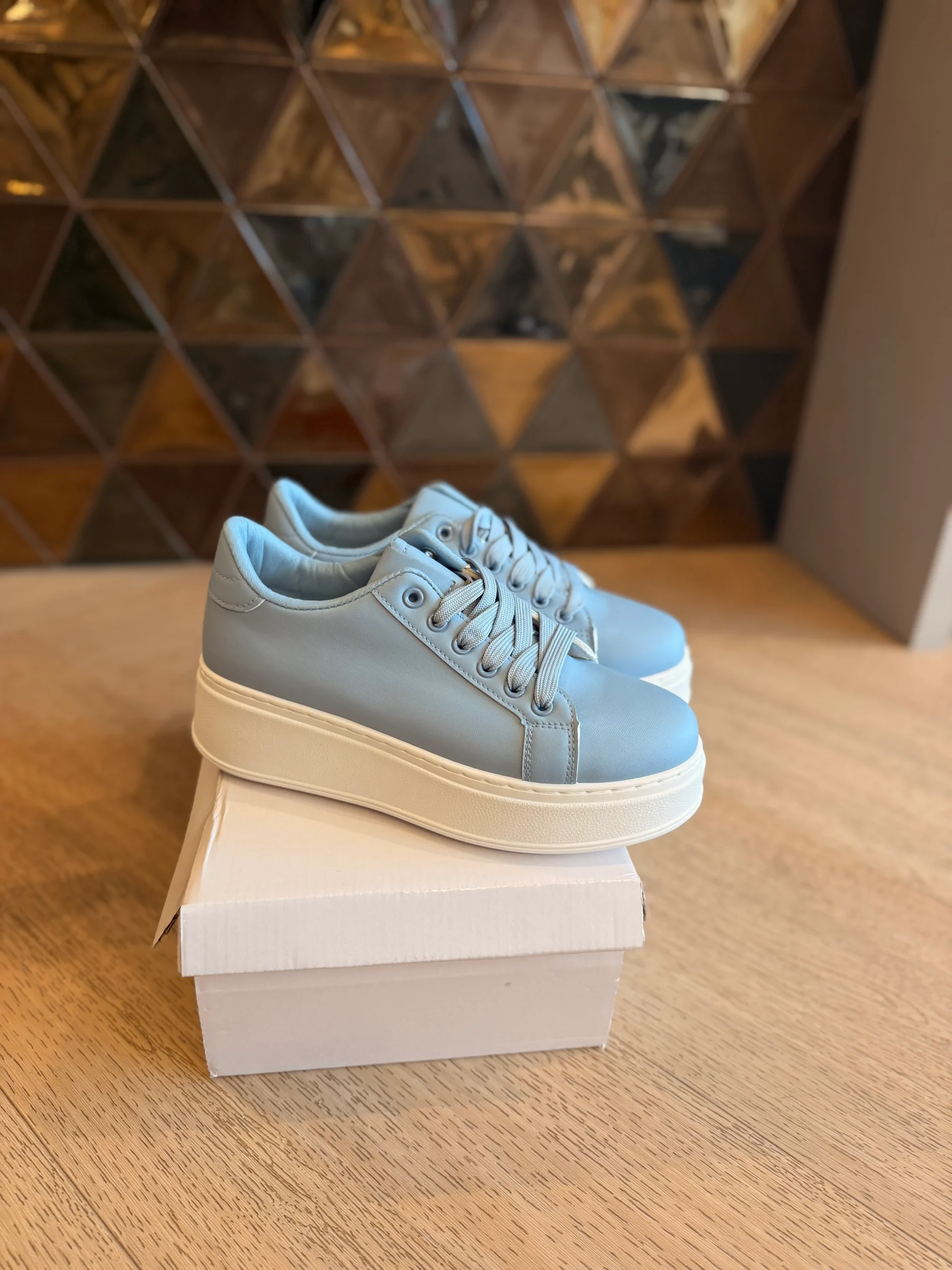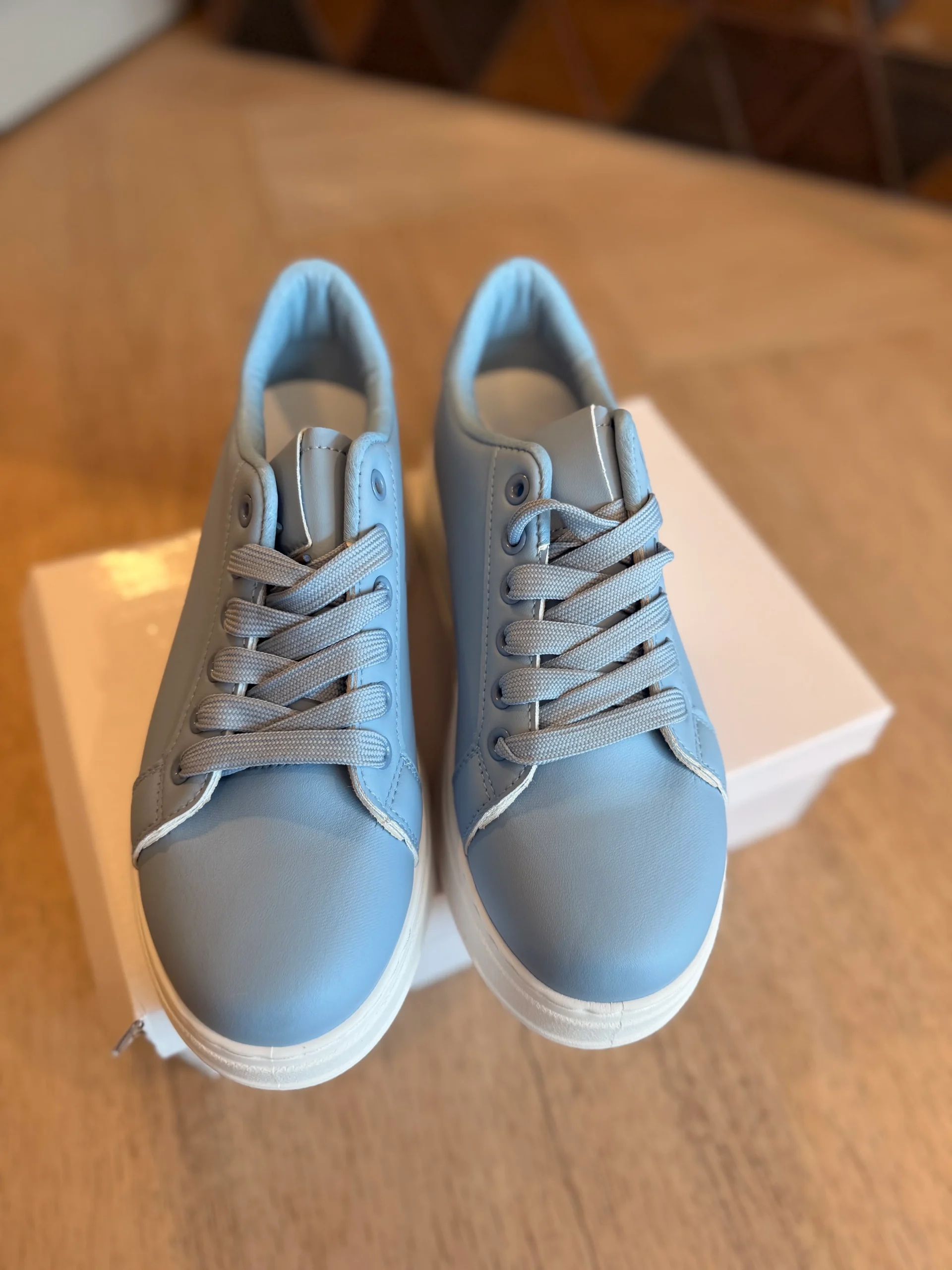 Deze sneaker is een echte allrounder. Het effen design met brede veters in dezelfde stijl als de schoen zorgt voor een moderne, rustige look. De dikke witte zool geeft een trendy touch én extra comfort. Dankzij het gladde materiaal is de sneaker makkelijk schoon te houden en perfect te combineren met elke outfit. Een tijdloze must-have voor elke garderobe!