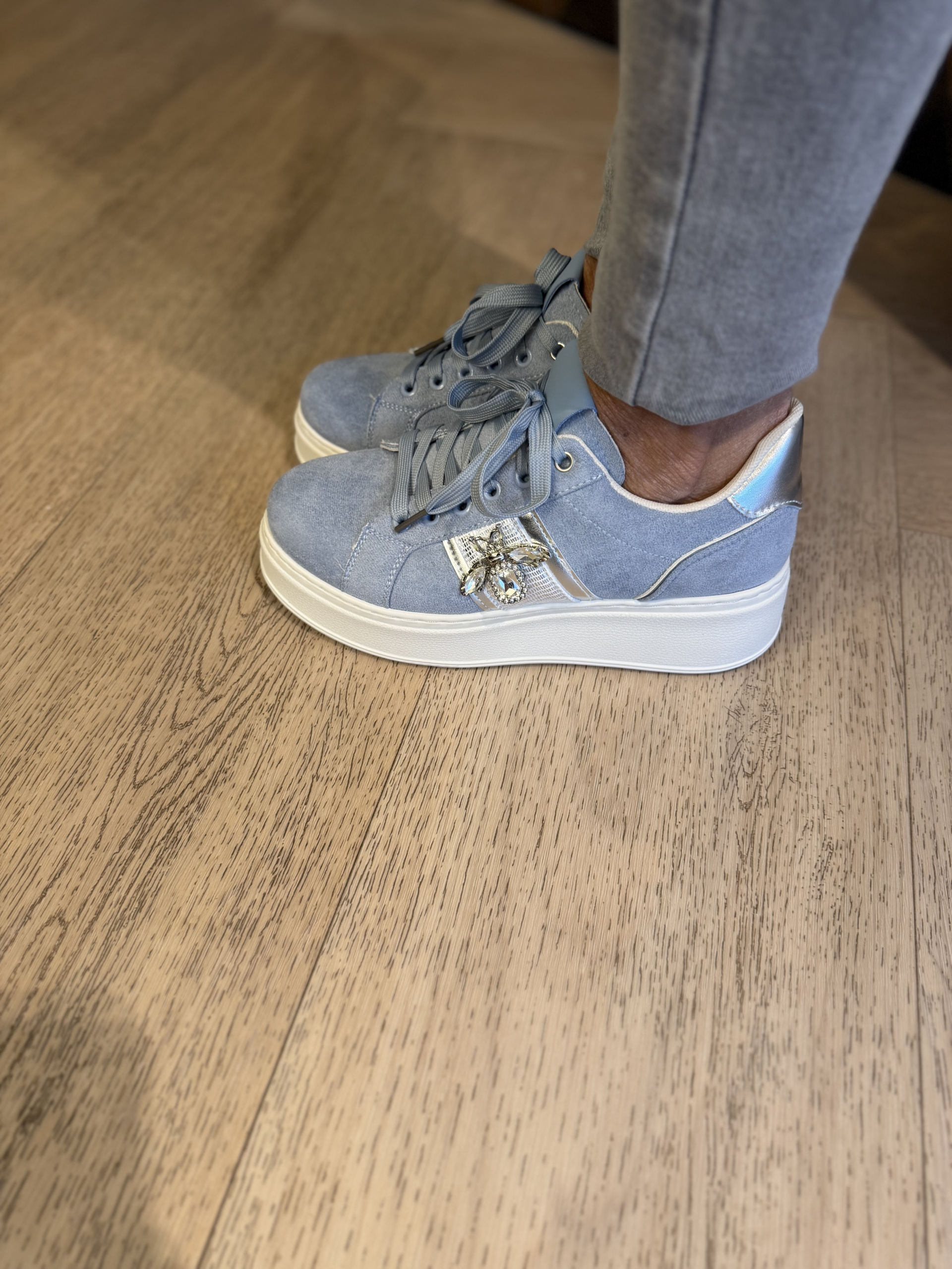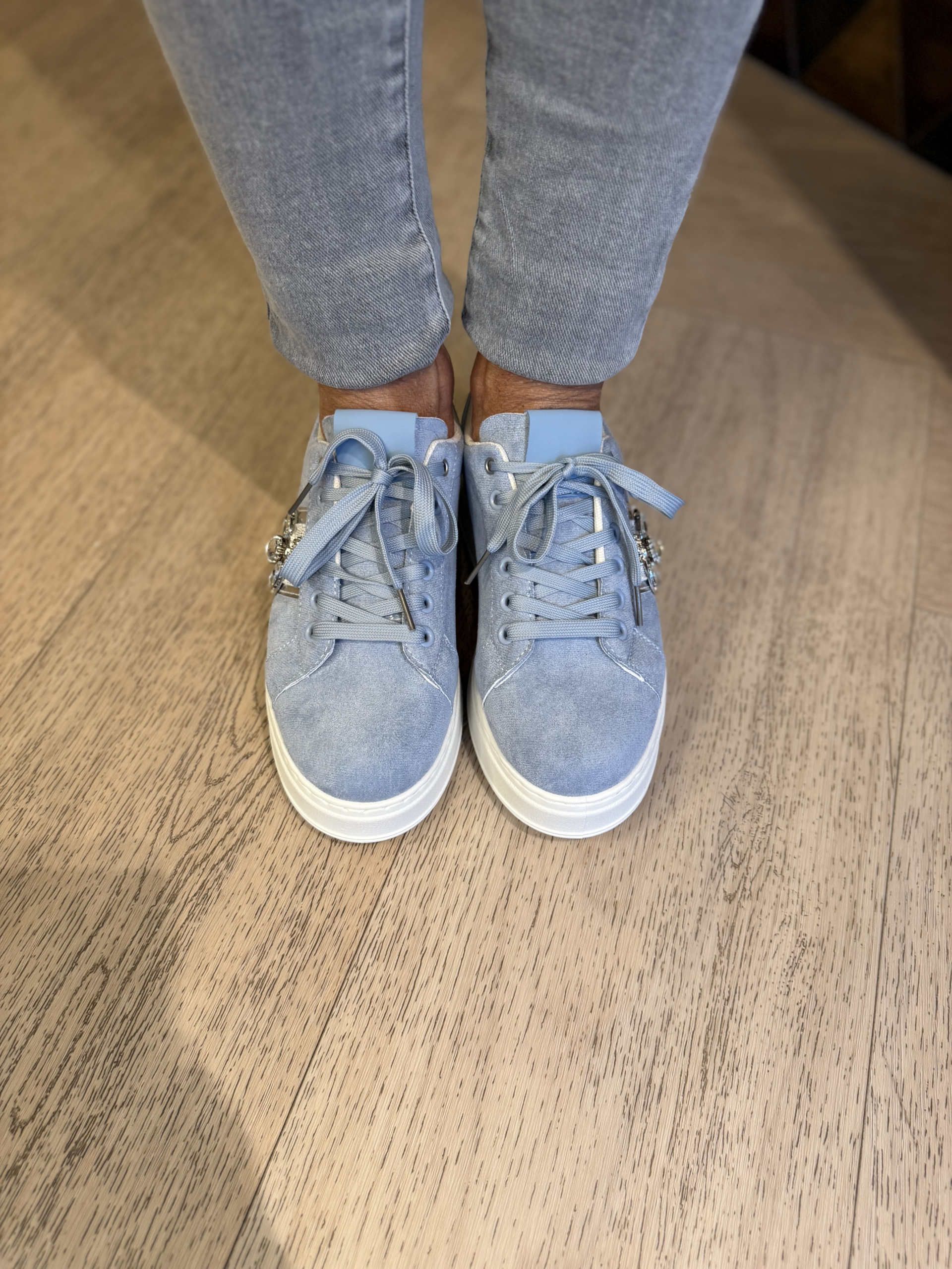 Deze sneaker met plateauzool is een echte eyecatcher. De veters in dezelfde kleur als de sneaker zorgen voor een rustige, luxe uitstraling. Op de hak en zijkant is een subtiel goud- of zilverkleurig detail verwerkt, dat het design nét dat beetje extra geeft. De speelse applicatie aan de zijkant maakt de sneaker helemaal af. Perfect voor wie comfort en fashion moeiteloos wil combineren.