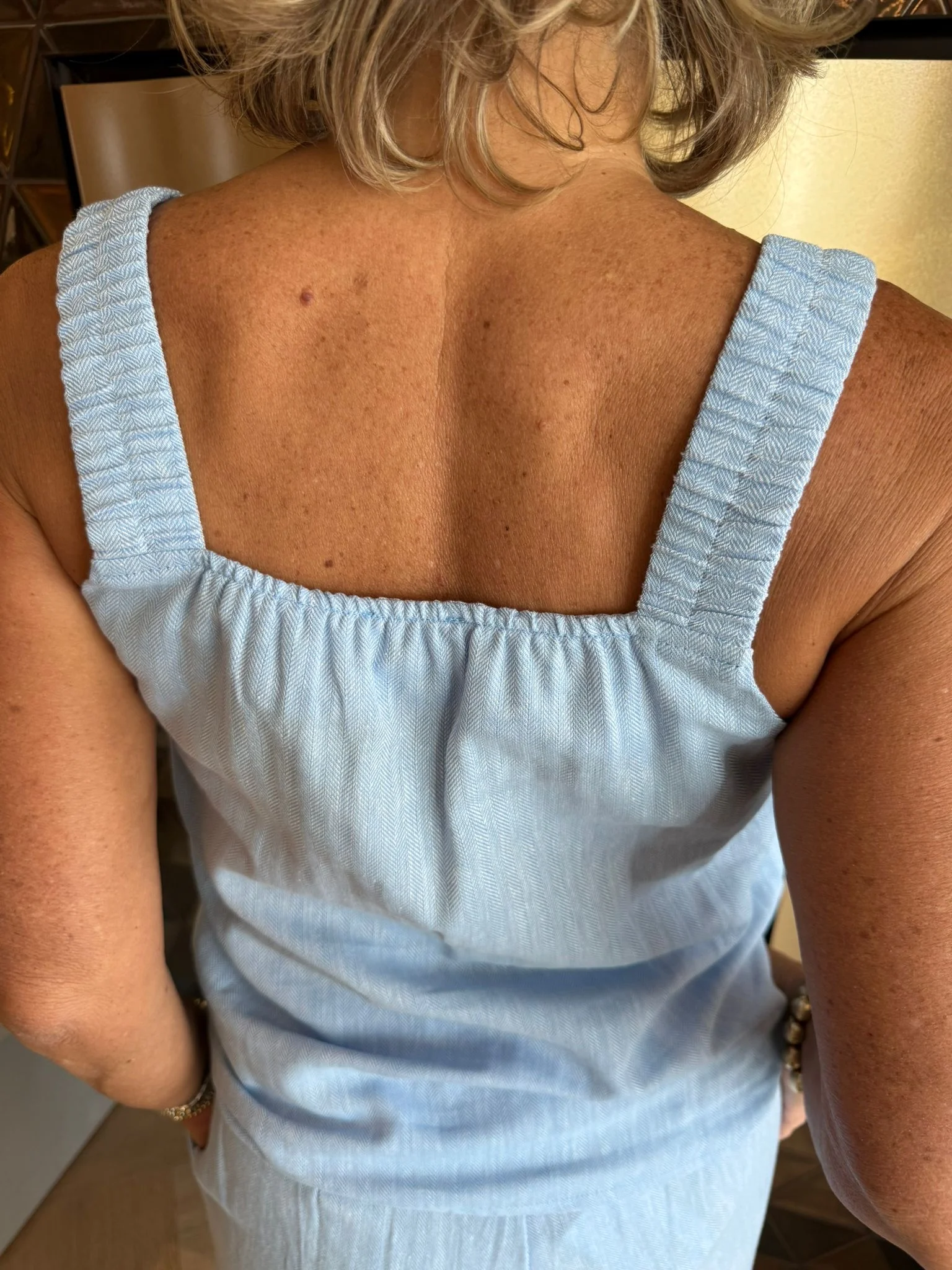 De brede elastische banden geven de top een sportieve touch en zorgen tegelijk voor extra draagcomfort en een mooie aansluiting. Dankzij het soepele ontwerp draag je deze top moeiteloos de hele dag.