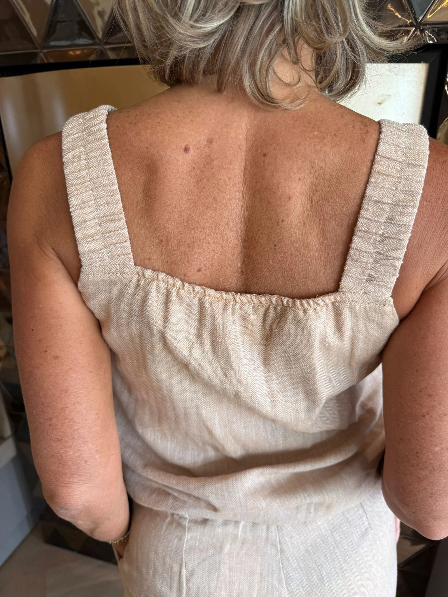 Deze mouwloze top met stijlvol visgraatmotief is een echte must-have voor een moderne, comfortabele look. De ronde hals aan zowel de voor- als achterkant zorgt voor een tijdloze en toegankelijke uitstraling.
