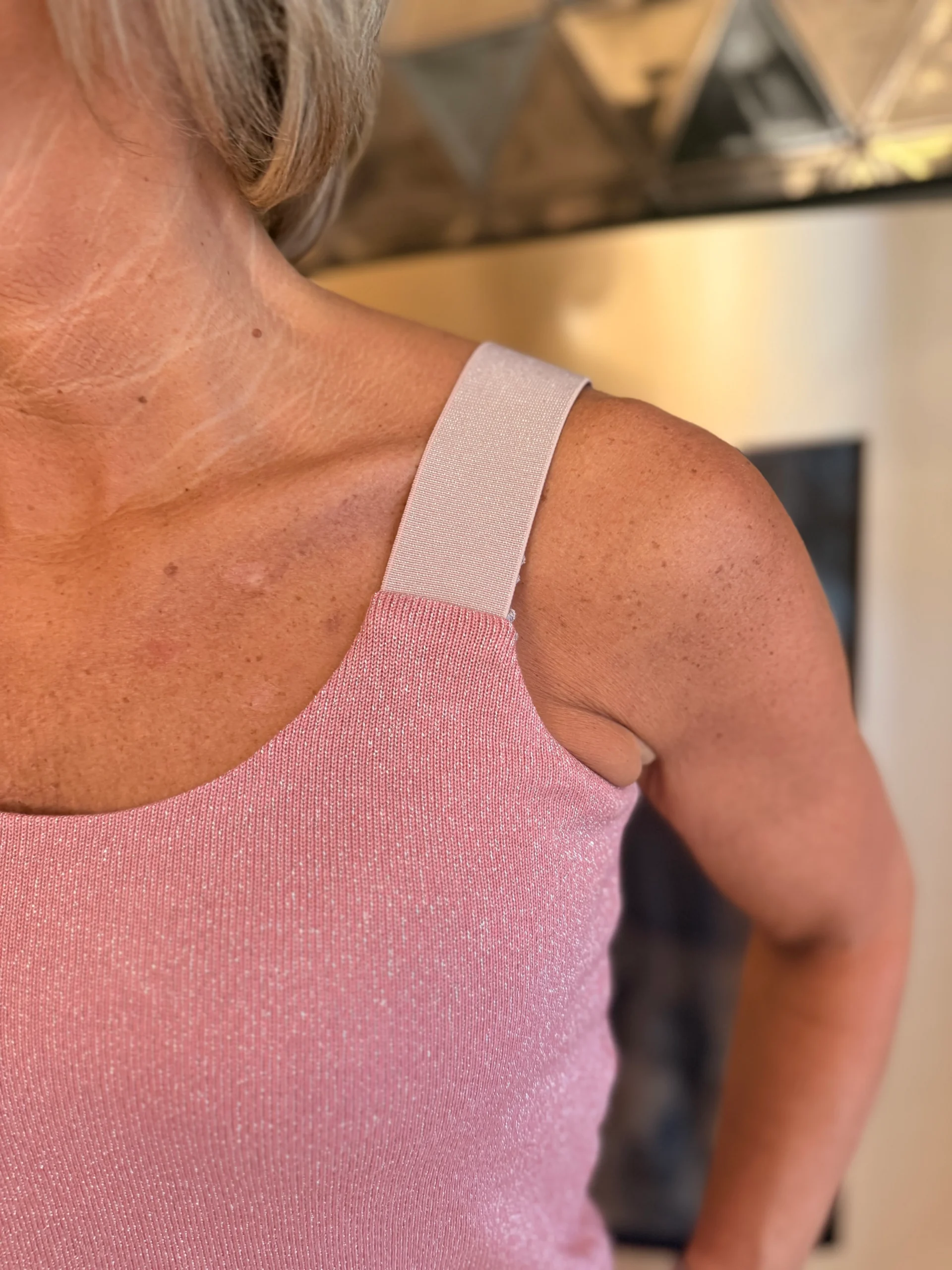 Deze stijlvolle top heeft een ronde hals aan de voorkant en een rechte belijning aan de achterkant, met elegante banden over de schouders. De zoom loopt aan de voorkant recht en rond af aan de achterkant, wat zorgt voor een speels en flatterend effect. De top is perfect te dragen onder het Caserta vest en laat zich ook prachtig combineren met de bijpassende sjaal voor een complete, stijlvolle look.