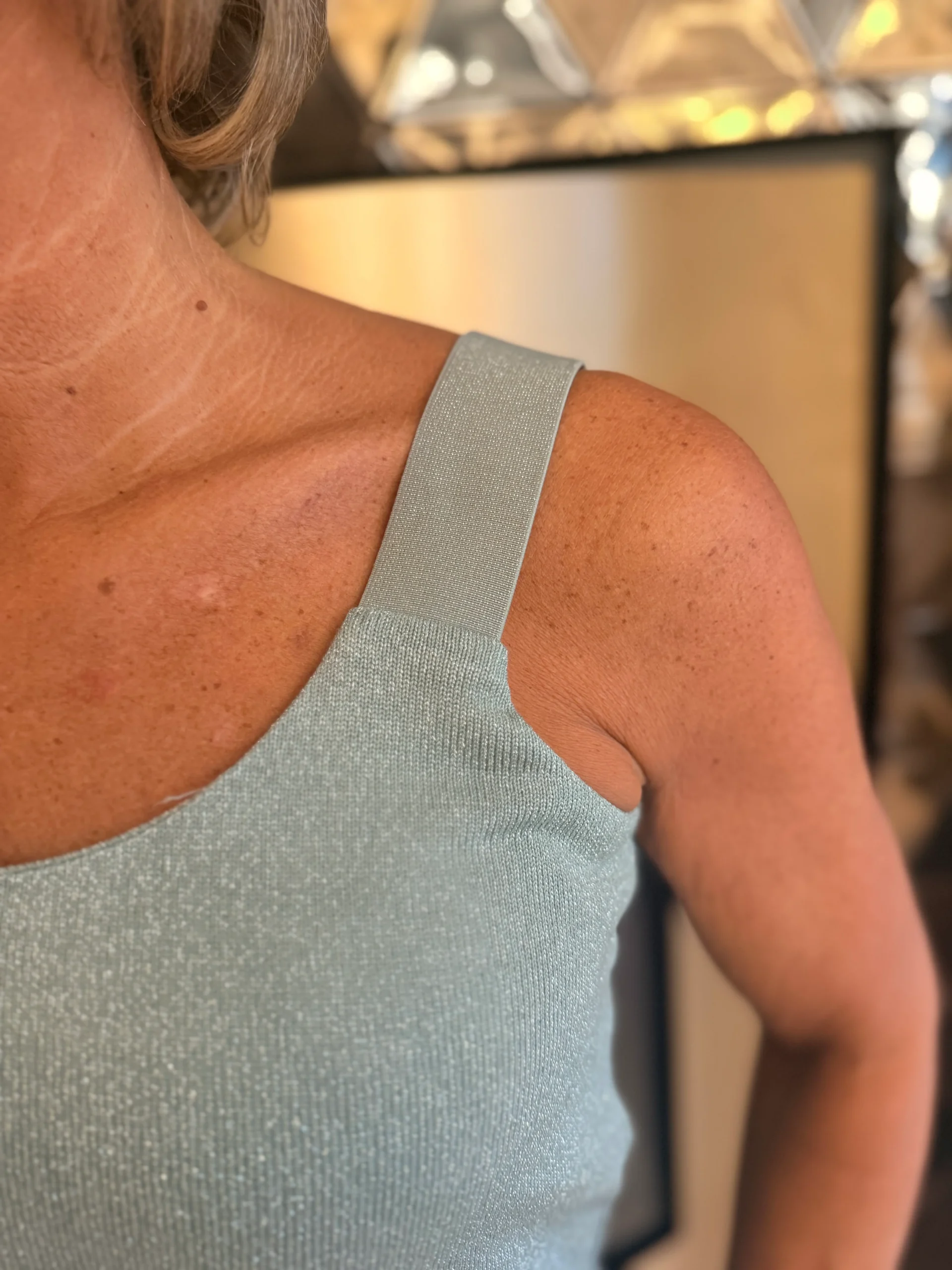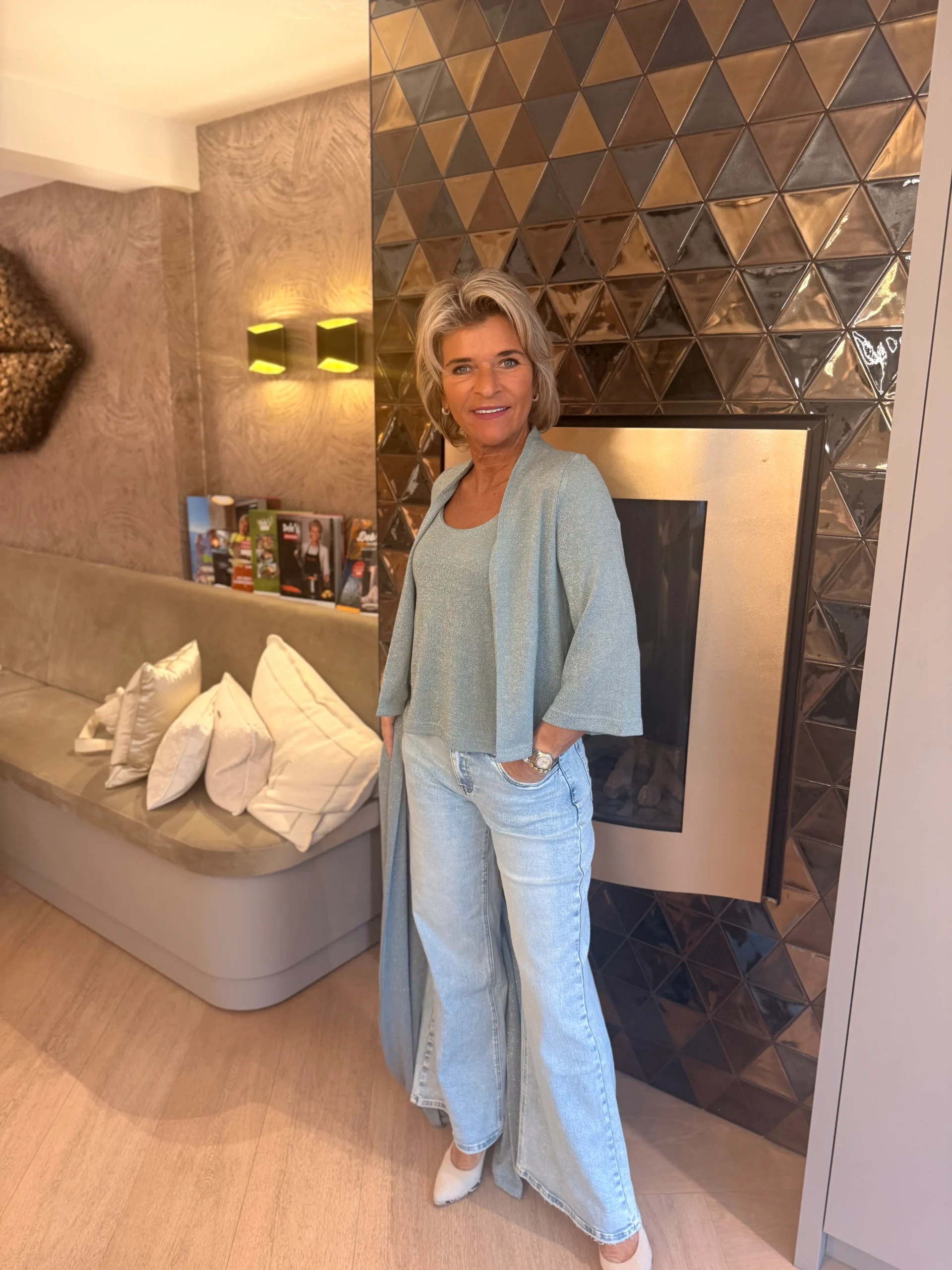 Deze stijlvolle top heeft een ronde hals aan de voorkant en een rechte belijning aan de achterkant, met elegante banden over de schouders. De zoom loopt aan de voorkant recht en rond af aan de achterkant, wat zorgt voor een speels en flatterend effect. De top is perfect te dragen onder het Caserta vest en laat zich ook prachtig combineren met de bijpassende sjaal voor een complete, stijlvolle look.