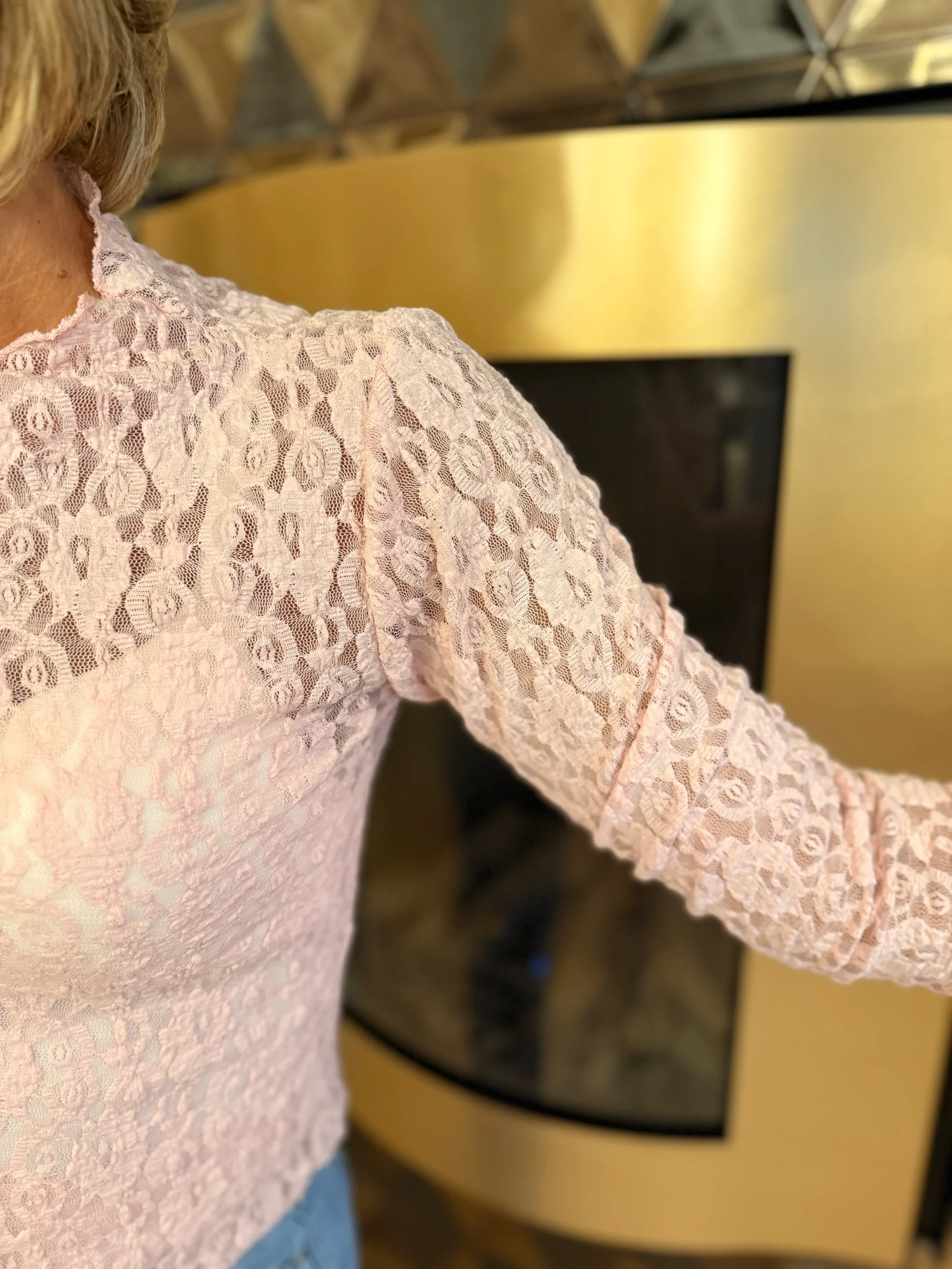 Deze transparante mesh top met ronde hals is een echte eyecatcher dankzij het subtiele motief. Het model heeft een lengte van 58 cm en is one-size, waardoor hij comfortabel draagt. Draag hem los of als laagje over een topje voor een speels en trendy effect. Perfect om je outfit extra stijl en textuur te geven. Te dragen tot een maat L