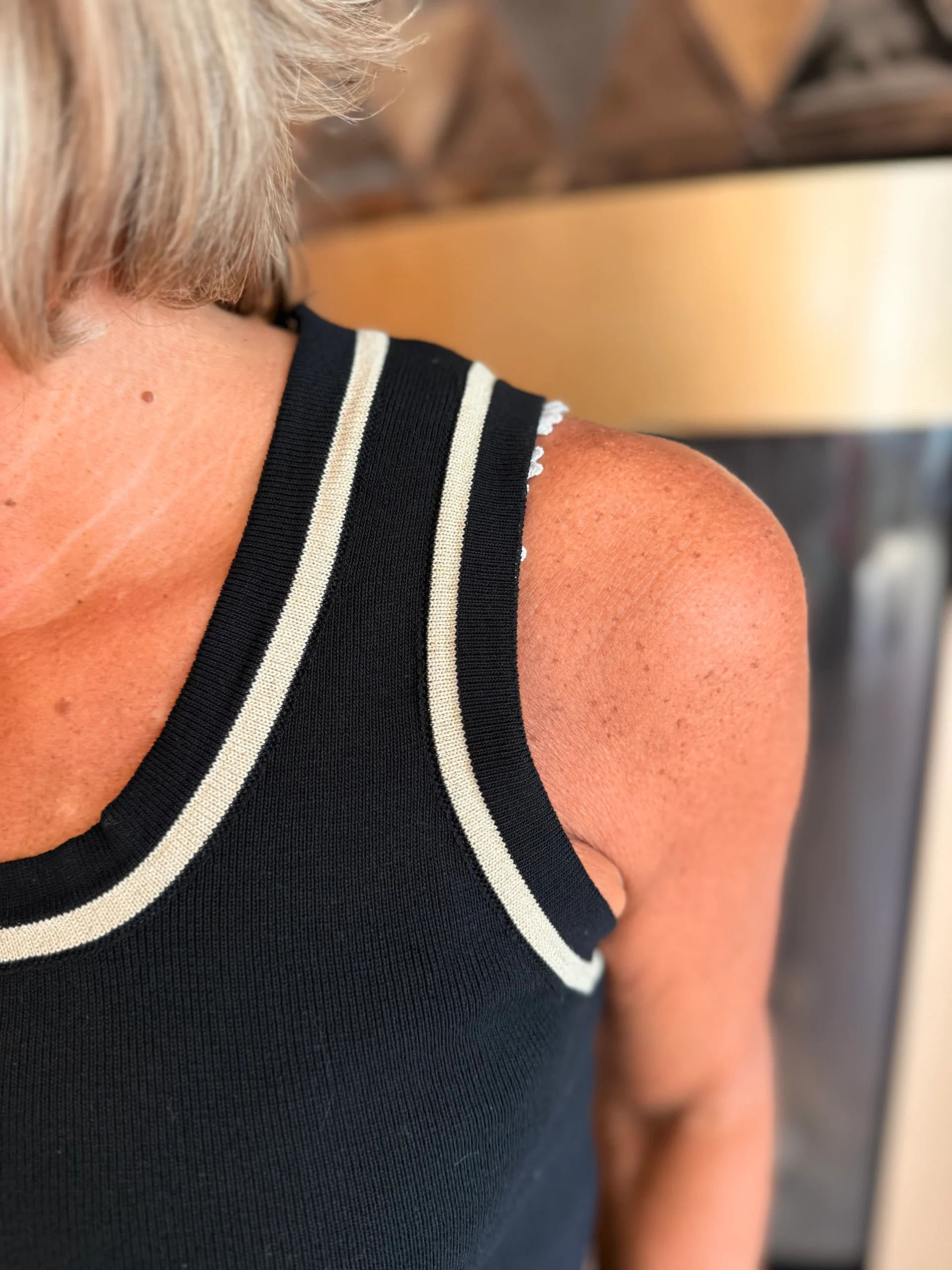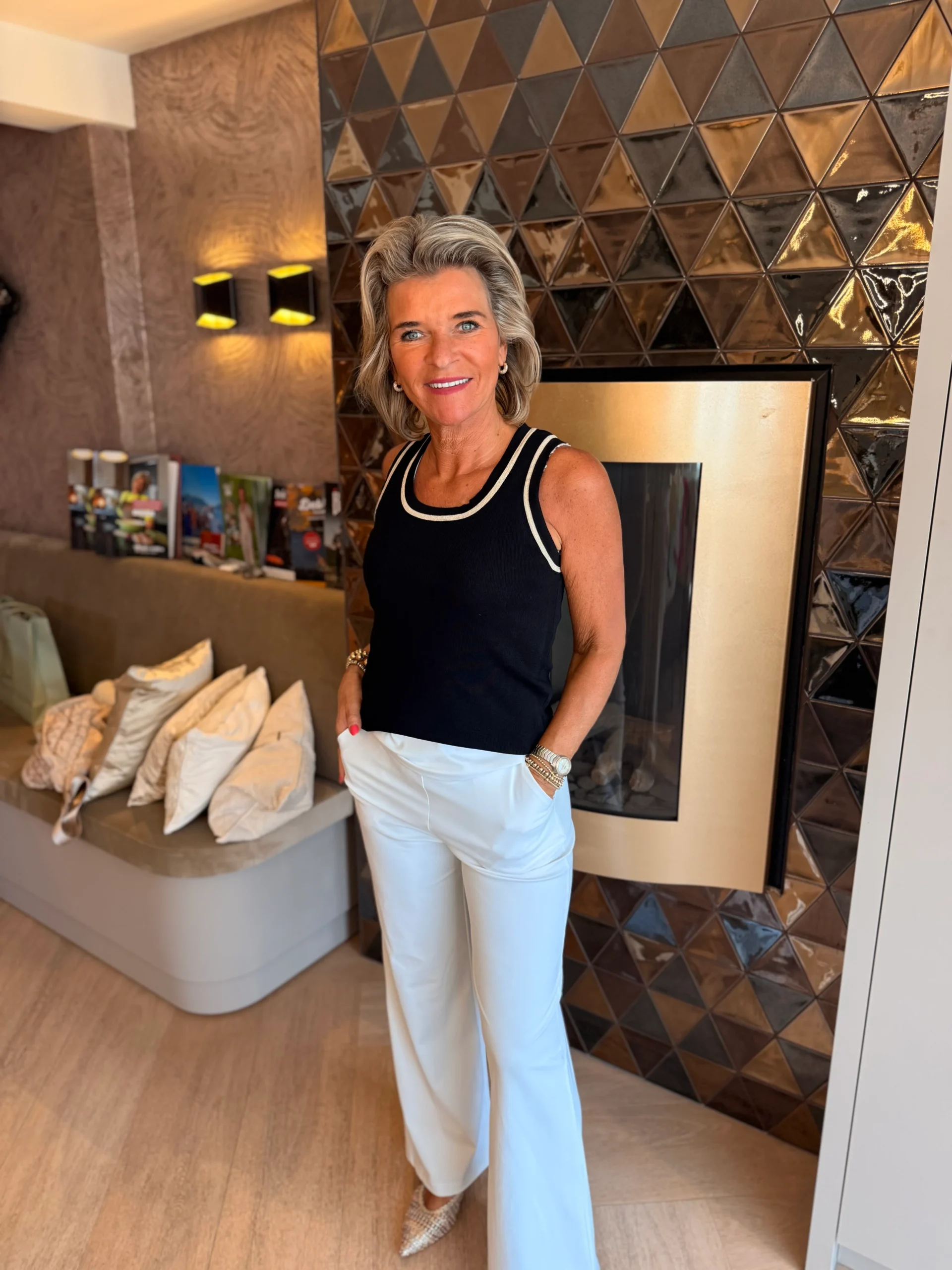De bies langs de hals en in de armsgaten geeft de top een mooie, afgewerkte uitstraling. De stof valt soepel en draagt comfortabel, perfect voor zowel casual als geklede momenten.
