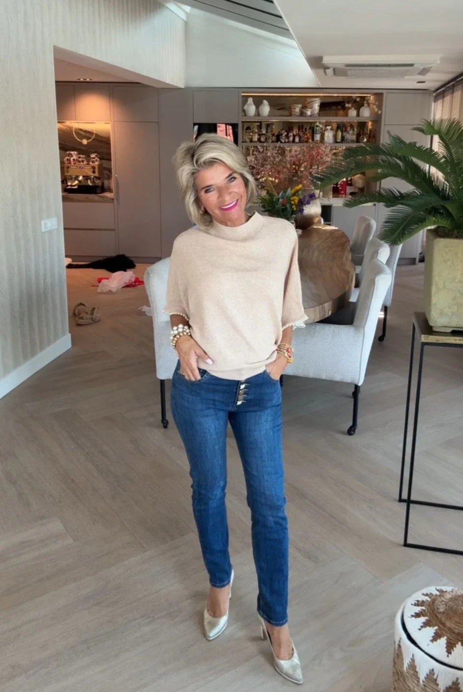 Zacht, stijlvol en vrouwelijk – deze trui met turtle neck is gemaakt van een heerlijk comfortabel materiaal en afgewerkt met parels langs de sierlijke vlindermouwen. Een verfijnde eyecatcher die warmte en elegantie moeiteloos combineert.