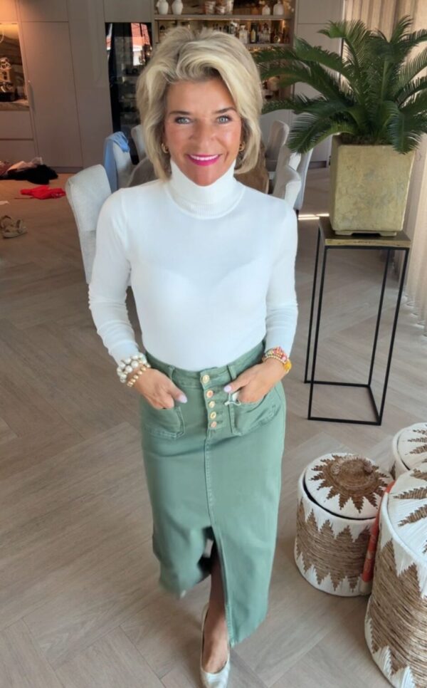 Deze wijde trui met hoge brede boord en subtiele rits is een echte musthave voor dit seizoen. De ronde onderkant en het speelse verschil in lengte iets korter aan de voorkant en langer aan de achterkant geven de trui een moderne en flatterende look. Dankzij de wijde mouwen zit hij heerlijk comfortabel en heeft hij nét dat beetje extra uitstraling.