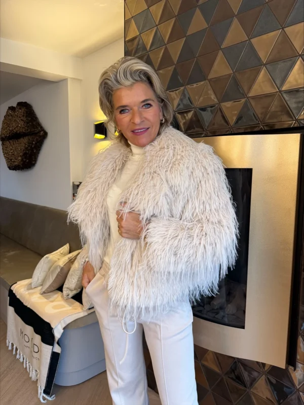 Zacht teddy vest met stijlvolle gouden knopen en een gevlochten bies langs de halslijn en zakken. Comfortabel voor elke dag.