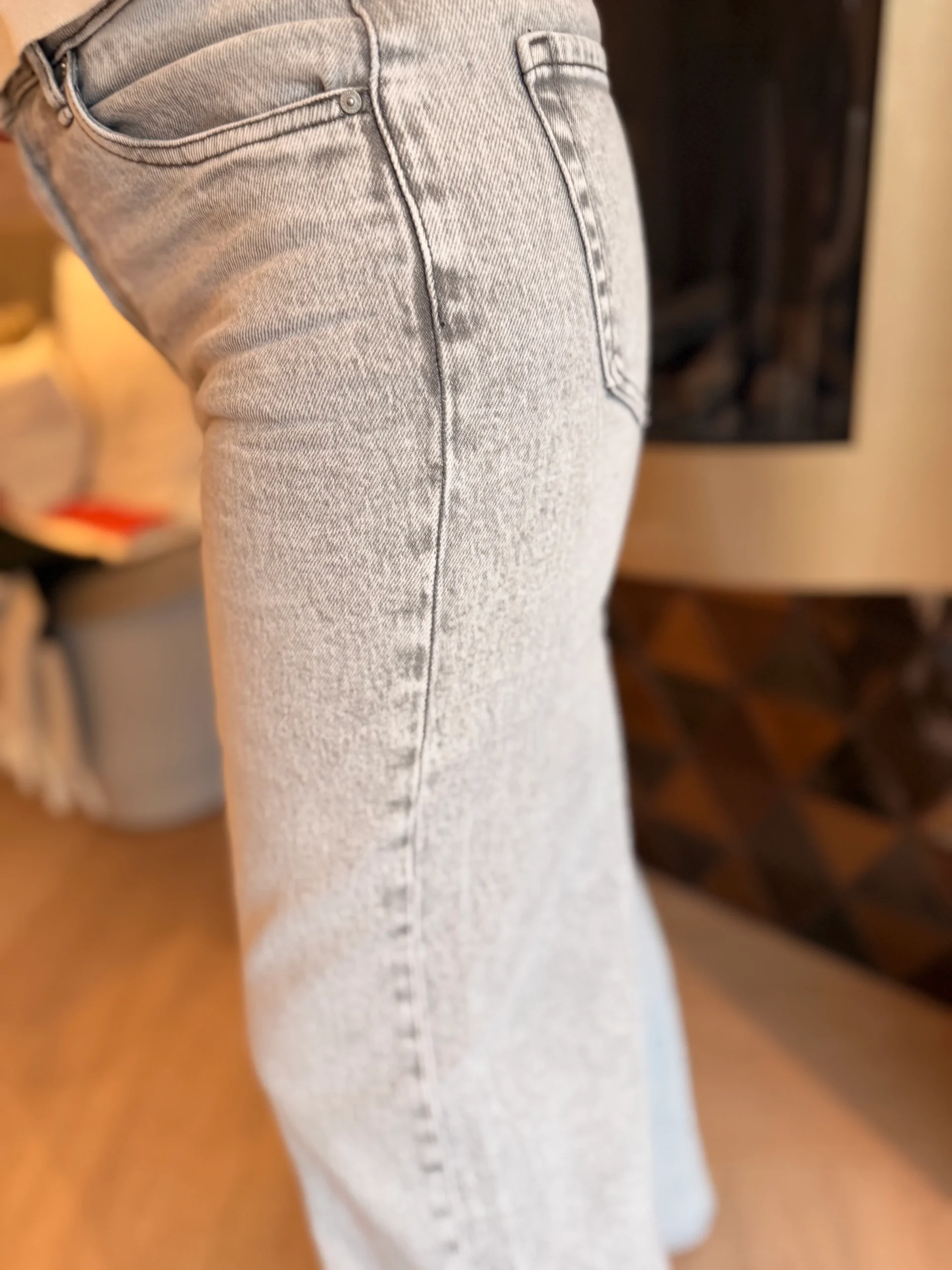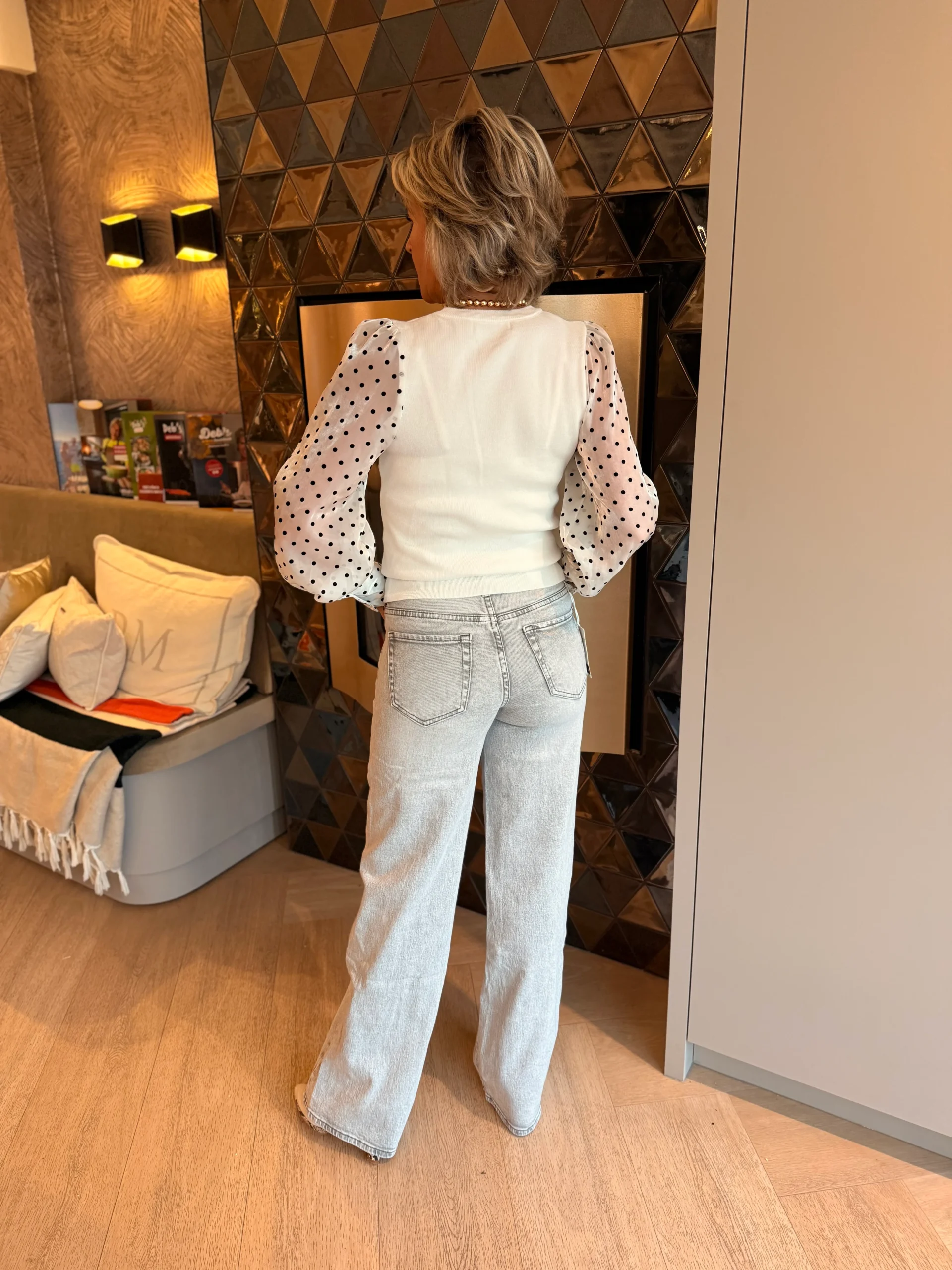 De rechte, wijdvallende pijpen creëren een mooi silhouet en laten zich makkelijk combineren met sneakers, laarsjes of hakken.
