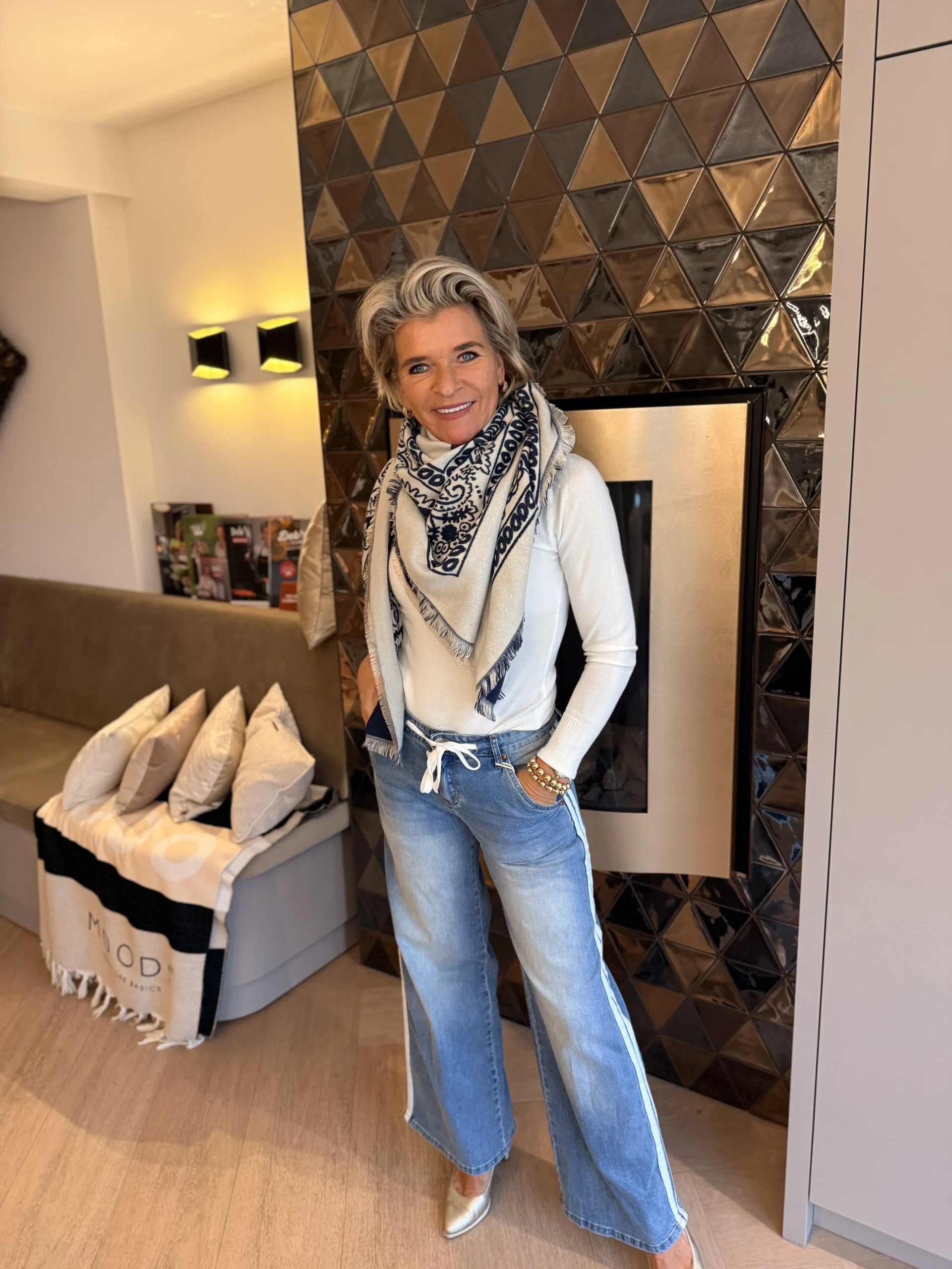 Dankzij het comfortabele model is deze poncho one size en mooi te dragen tot en met maat XXL. Perfect te combineren met een leren broek of jeans voor een stijlvolle casual look